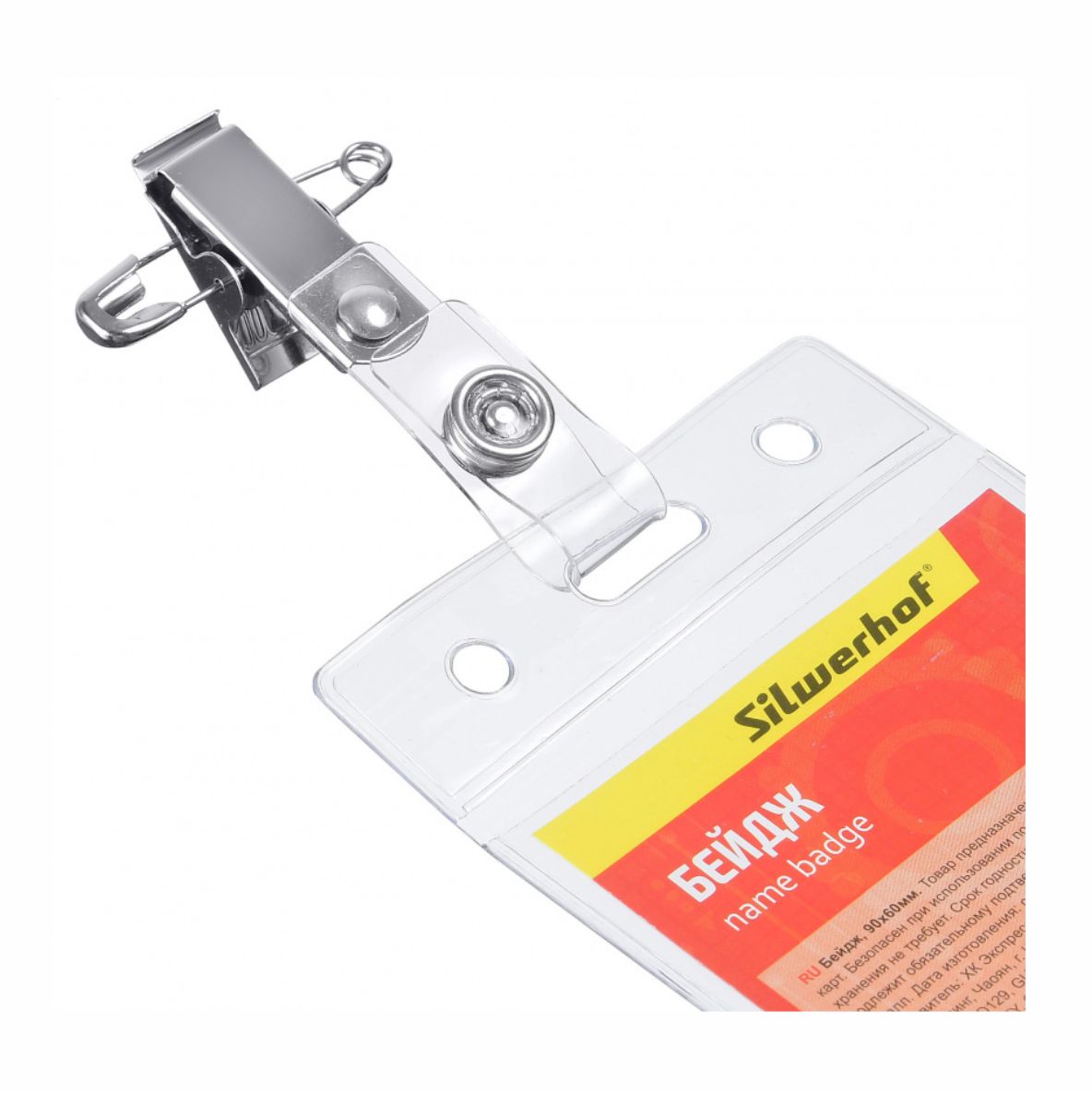 Бейдж - 90х60мм с булавкой + зажим вертикальный (Silwerhof)