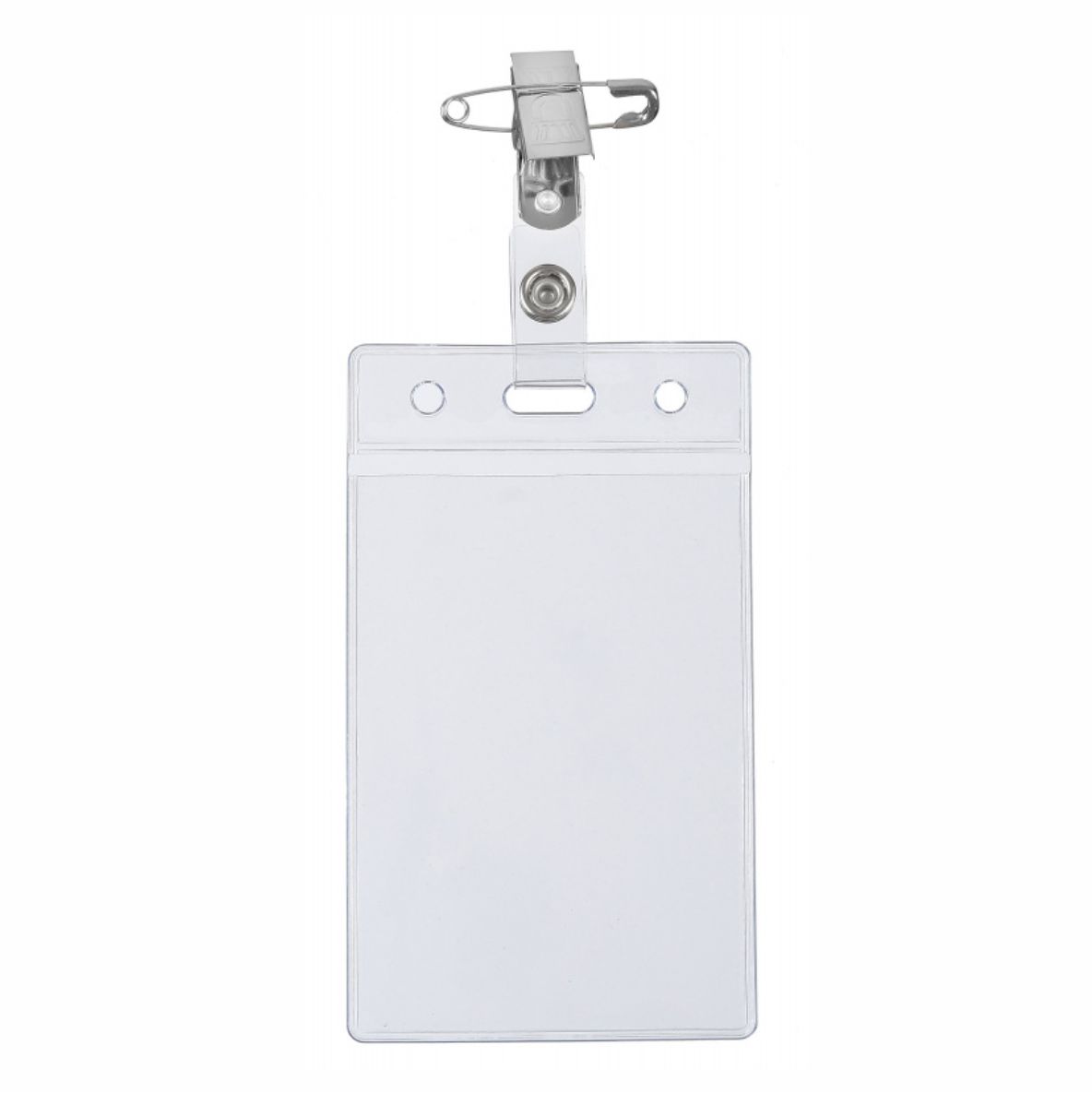 Корпус бейджа выполнен из прозрачного прочного пластика, который защищает карточку от загрязнений и повреждений, при этом позволяет легко читать информацию. Вертикальная ориентация подходит для большинства стандартных пропусков и бейдж-карт.