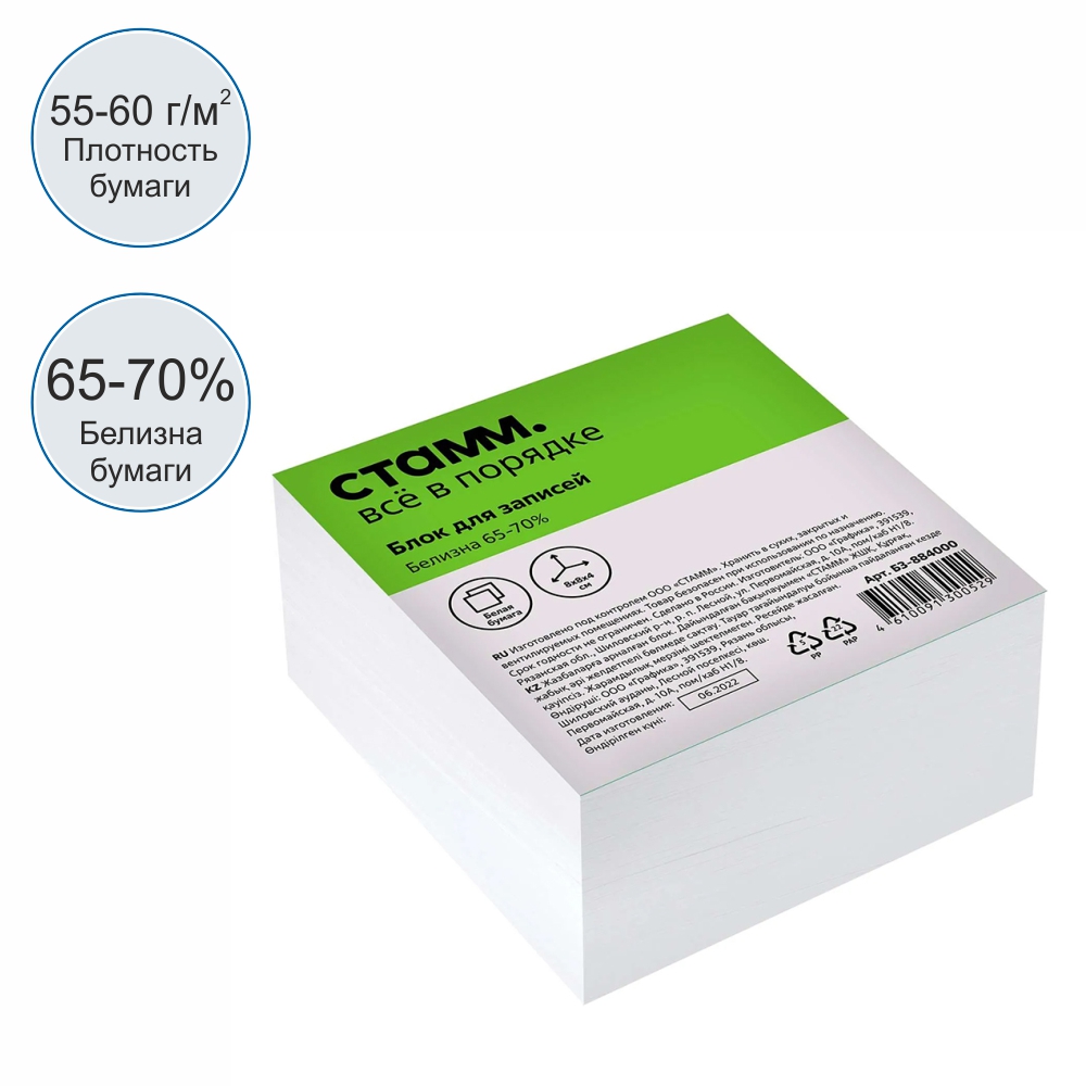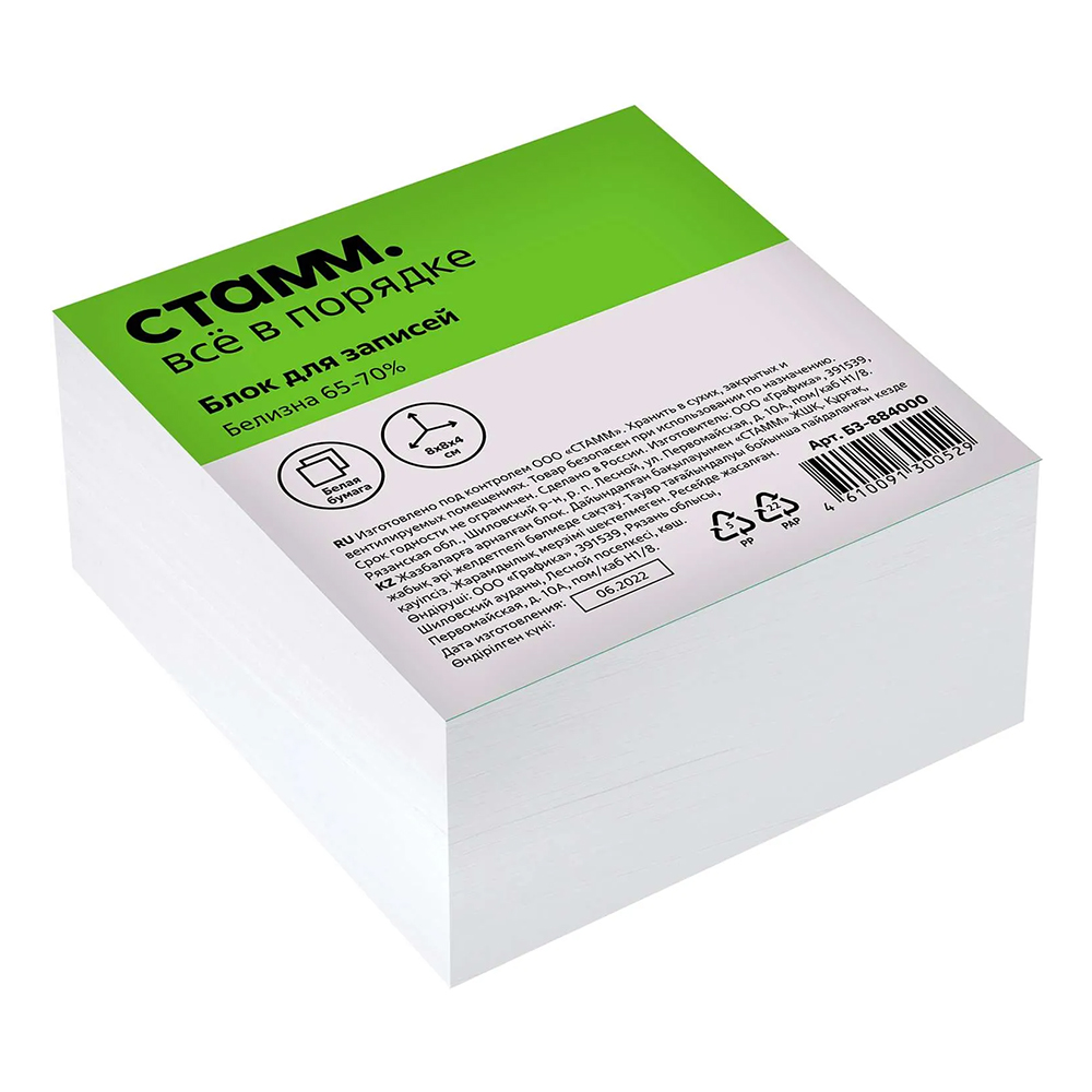 Бумага д/записей - 80х80х80 белый белизна 65-70% (Стамм) Бумага д/записей - 80х80х80 белый белизна 65-70% (Стамм)