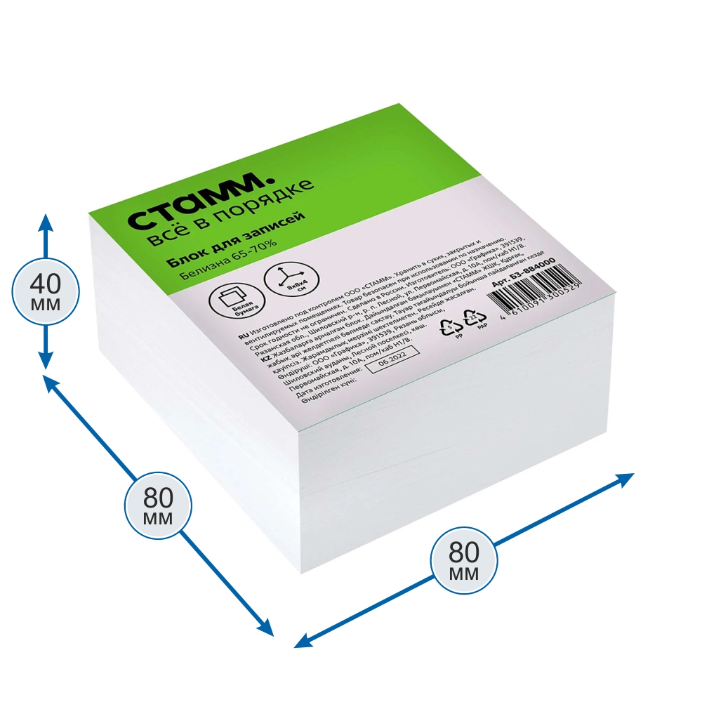 Бумага для записей 80×80×40 мм, белая "Basic" (Стамм).