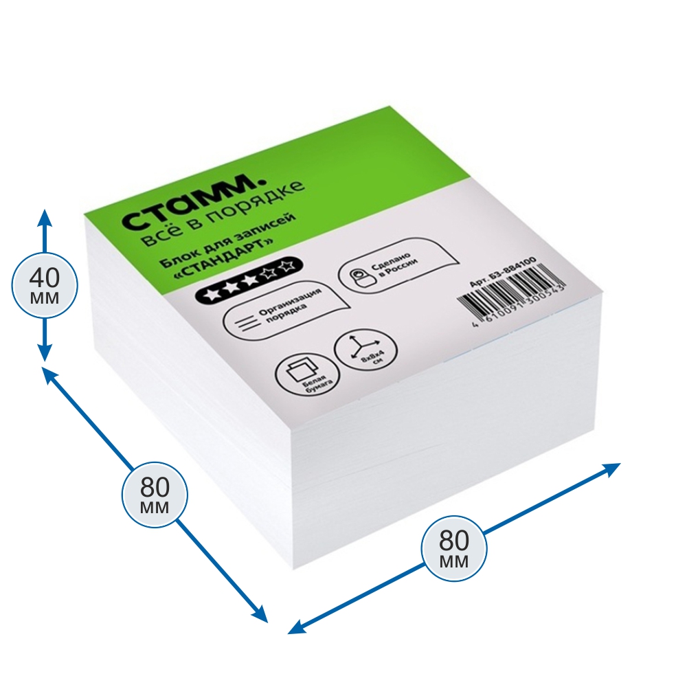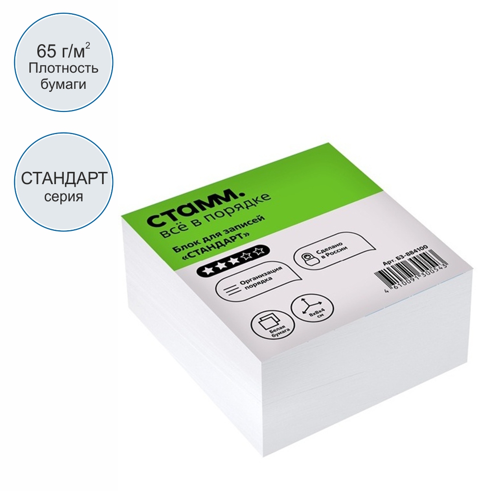 Бумага д/записей - 80х80х40 белый "Стандарт" (Стамм)