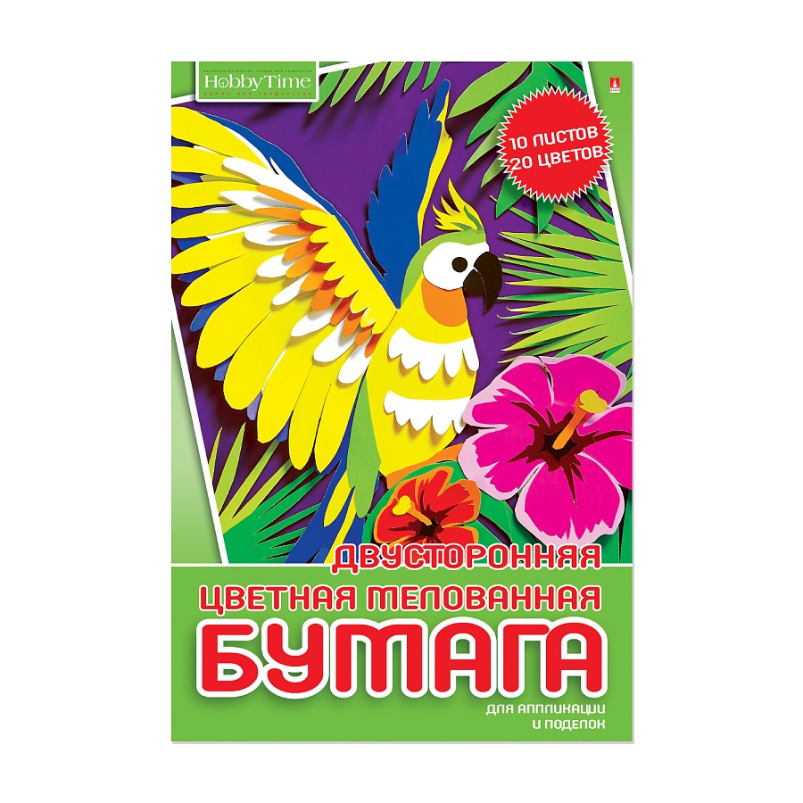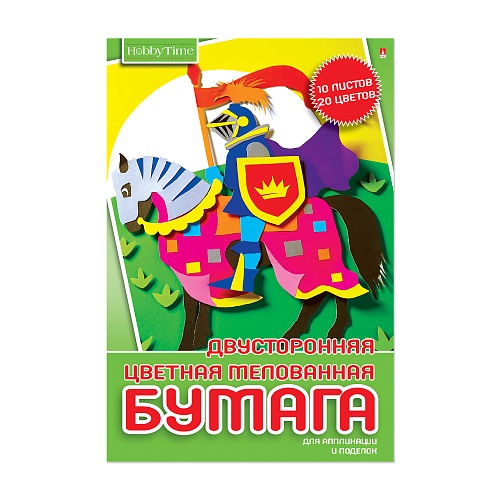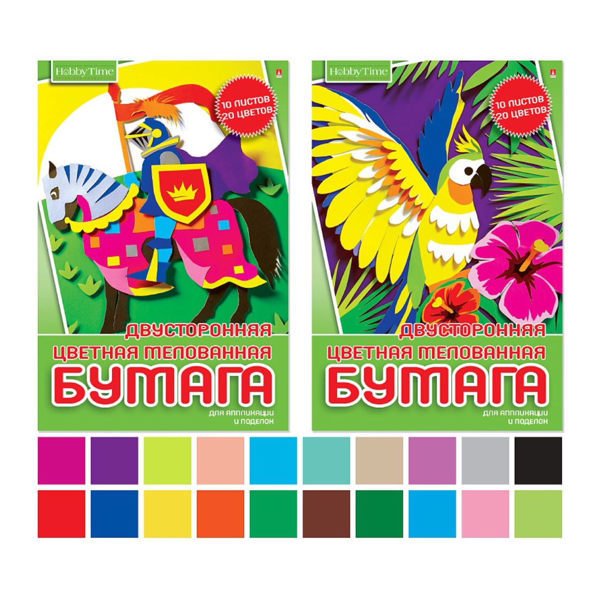 Бумага цветная в наборе - 195х288 10л. 20цв. двусторонняя мелованная "HobbyTime. Классика" (Альт)