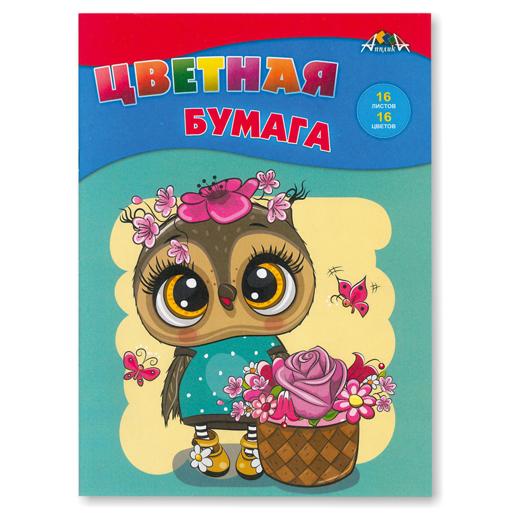 Бумага цветная в наборе - 200х275 16л. 16цв. "Совёнок с цветами" (КТС)