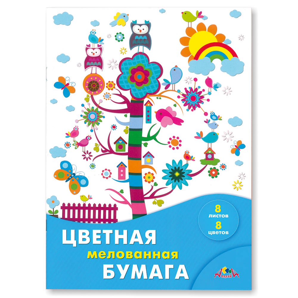 Бумага цветная в наборе - 200х275 8л. 8цв. "Разноцветное дерево" мелованная (КТС)