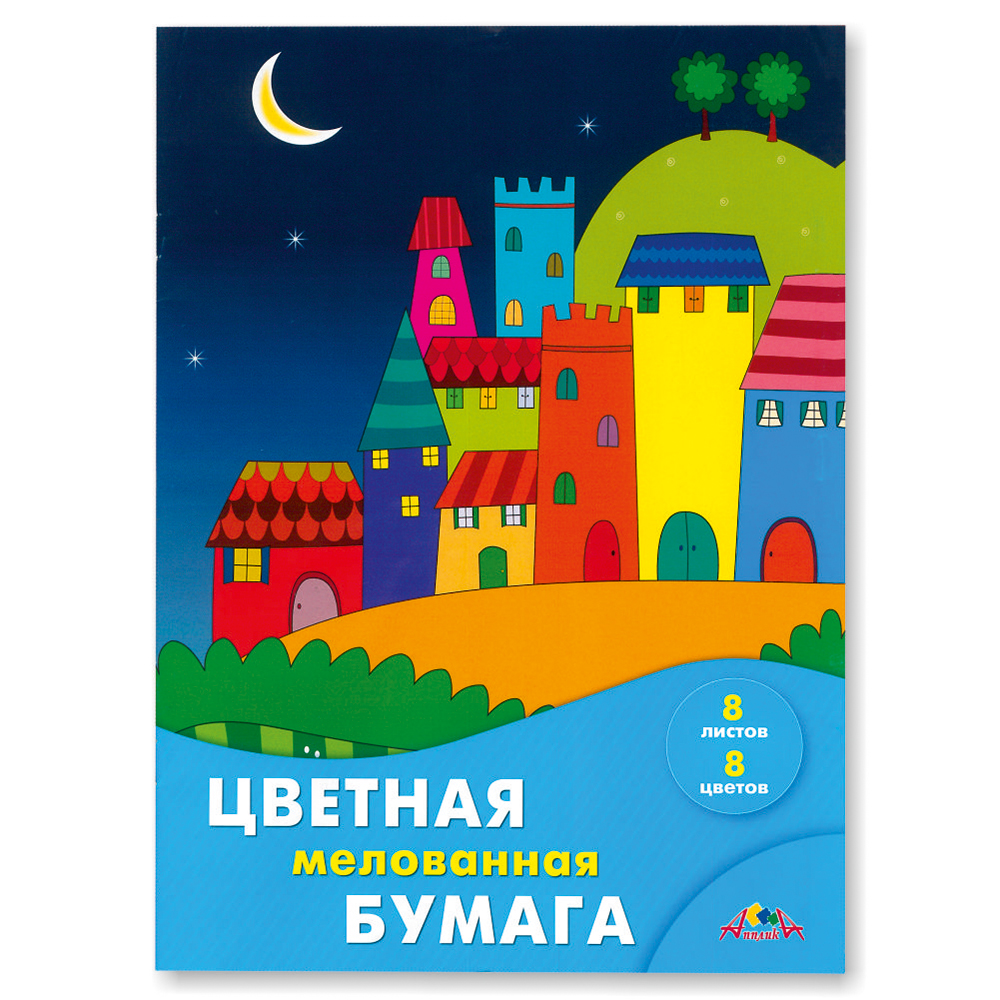 Бумага цветная в наборе - 200х275 8л. 8цв. "Цветные домики" мелованная (КТС)