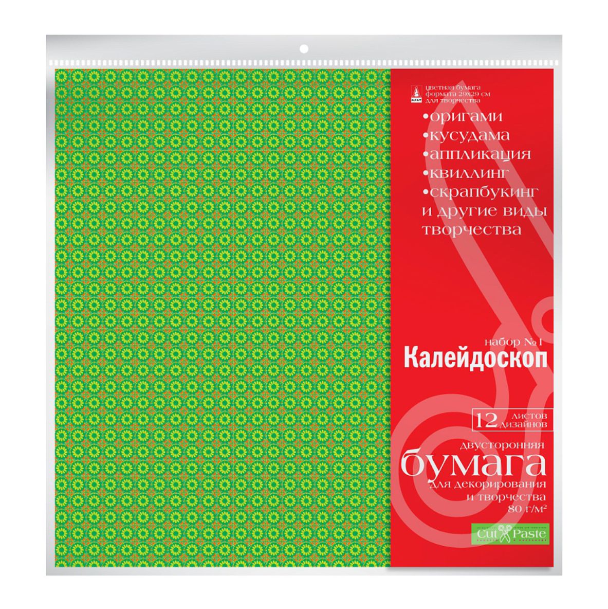 Набор цветной декоративной бумаги «Калейдоскоп» от Альт — это комплект из 12 листов размером 290×290 мм с яркими и разнообразными узорами.