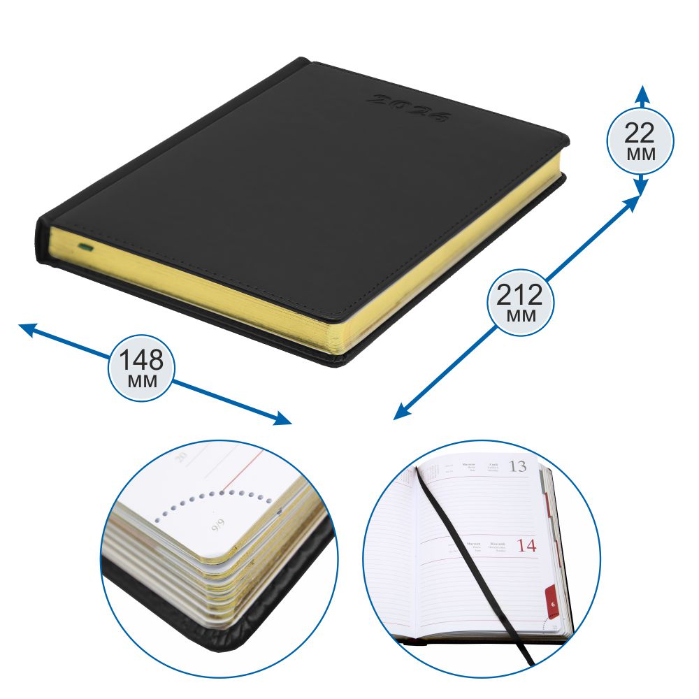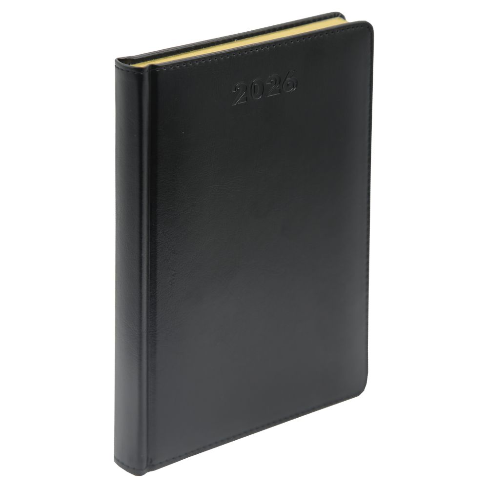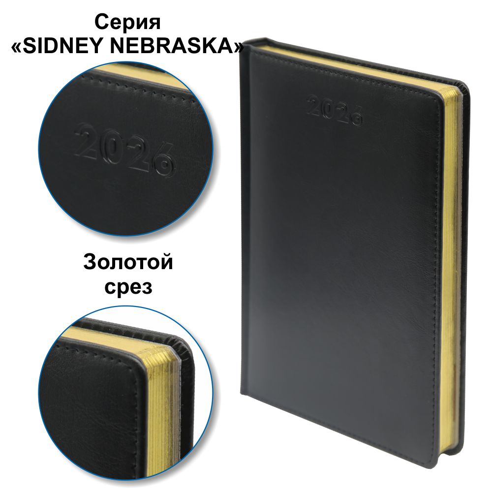 Ежедневник датированный - 2026г. А5 черный "SIDNEY NEBRASKA" срез золотой (GSF)