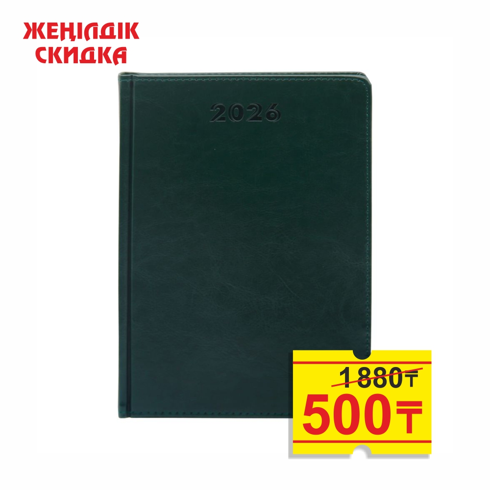 Ежедневник датированный - 2026г. А5 зеленый "SIDNEY NEBRASKA" срез золотой (GSF)