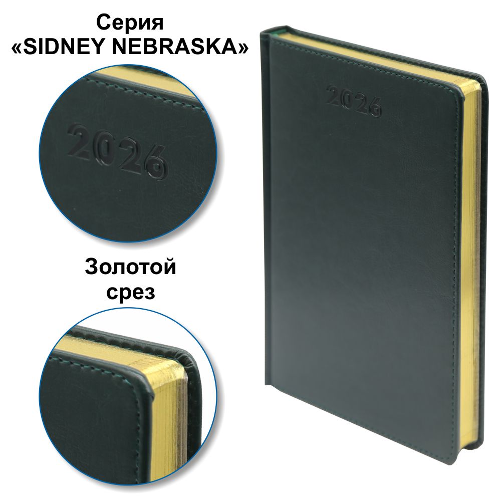 Ежедневник датированный 2026, формат A5, зелёный "SIDNEY NEBRASKA", золотой срез (GSF).