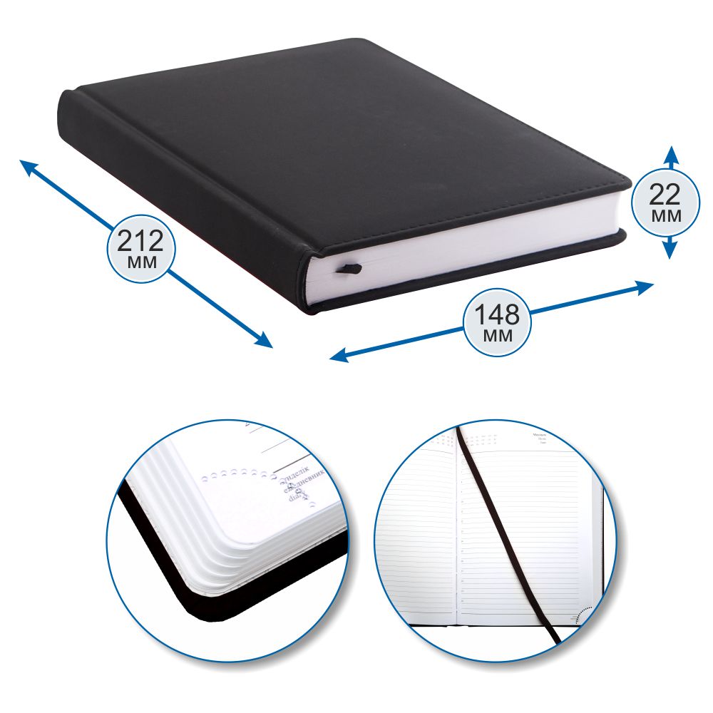формата А5 в твердой обложке из экокожи  -  идеальный помощник в деле планирования рабочего времени для тех, кто ценит рационализм и функциональность.