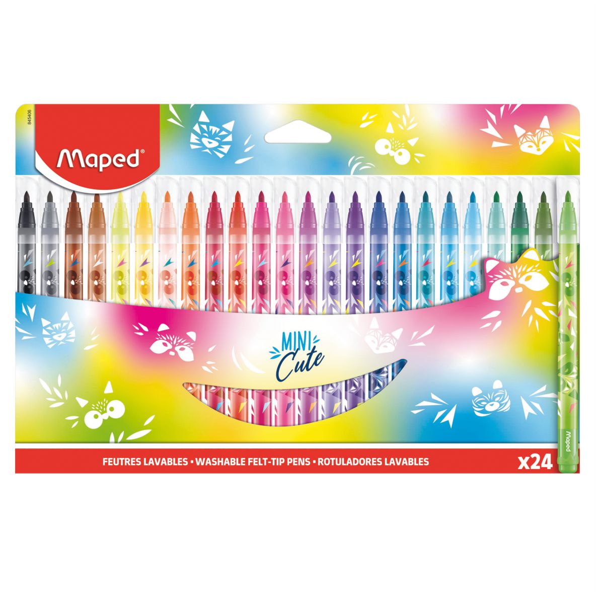 Фломастеры 24 цвета Mini Cute от Maped — яркий и безопасный набор для рисования, который идеально подходит для детей и творчества дома или в школе.