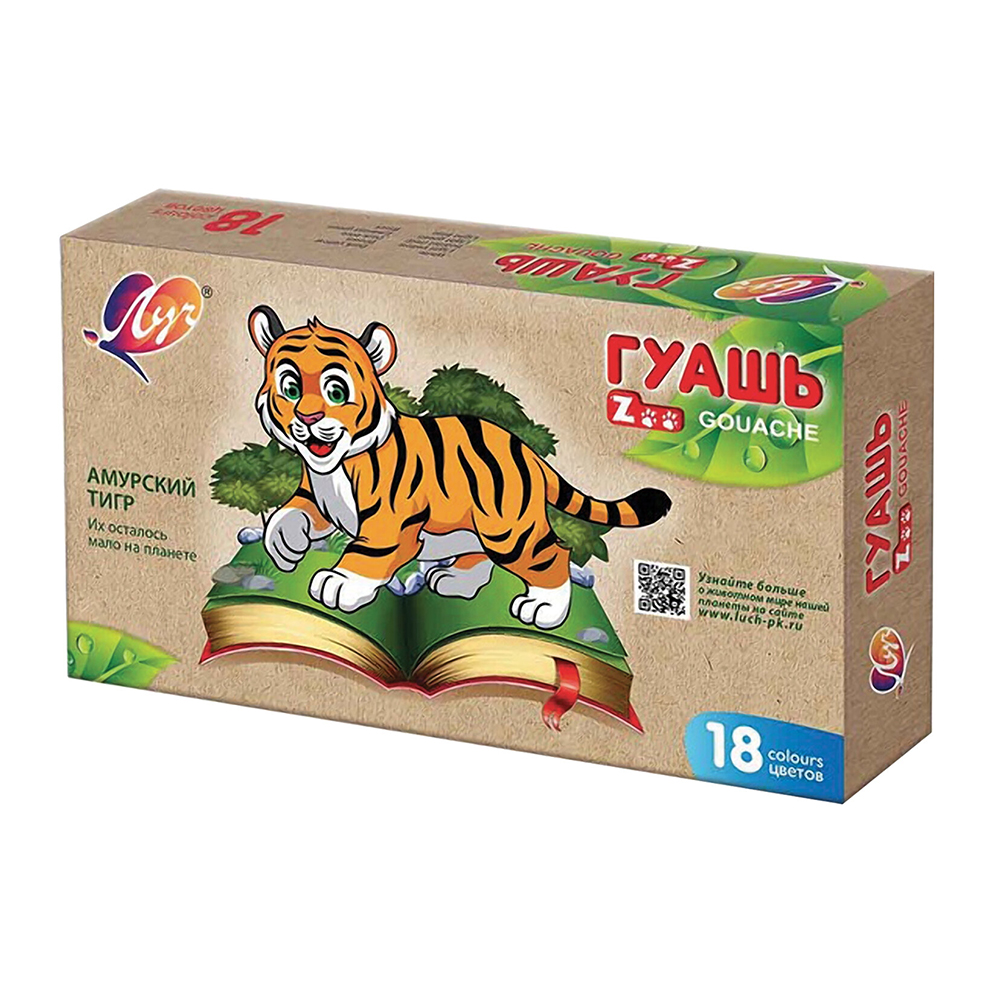 Гуашь 18 цветов, 15 мл, набор «ZOO», картонная упаковка (Луч)