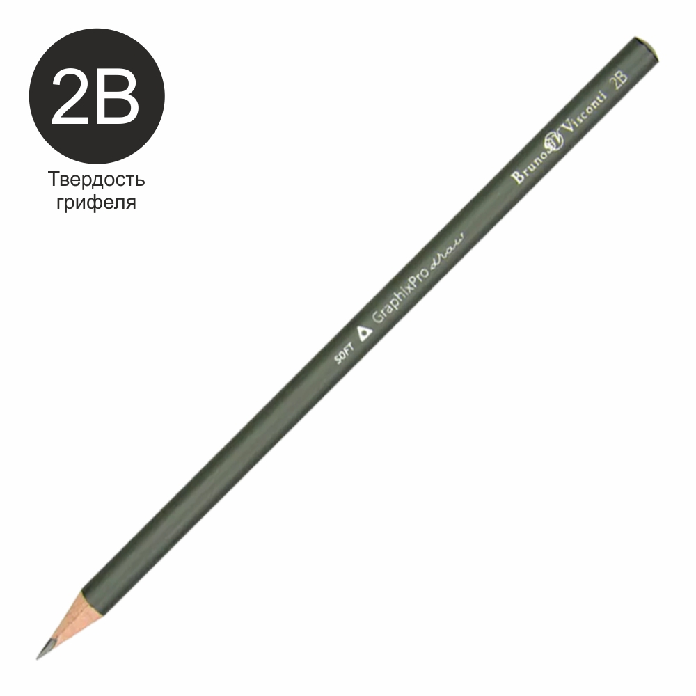 Карандаш Bruno Viscont «GraphixPro», мягкость 2B — универсальный инструмент для рисования, черчения и эскизов.