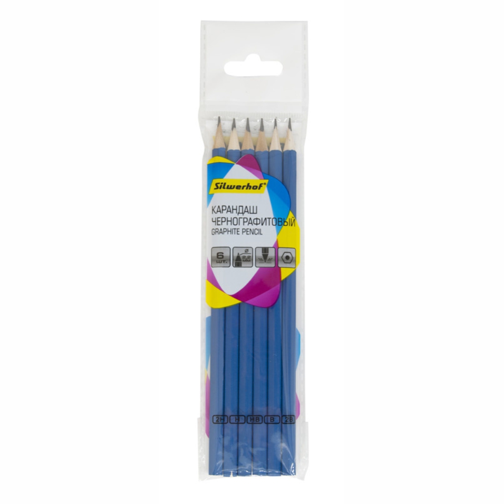 Набор карандашей Silwerhof "Zeichner", 6 шт., градации 2H–2B. Набор графитных карандашей Silwerhof "Zeichner" включает 6 карандашей разных твёрдостей от 2H до 2B — идеальное решение для рисования, черчения и письма.