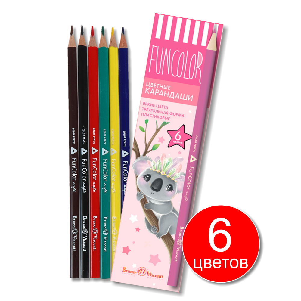 Карандаши в наборе цветные - 6цв. "FUNCOLOR" (Bruno Visconti)
