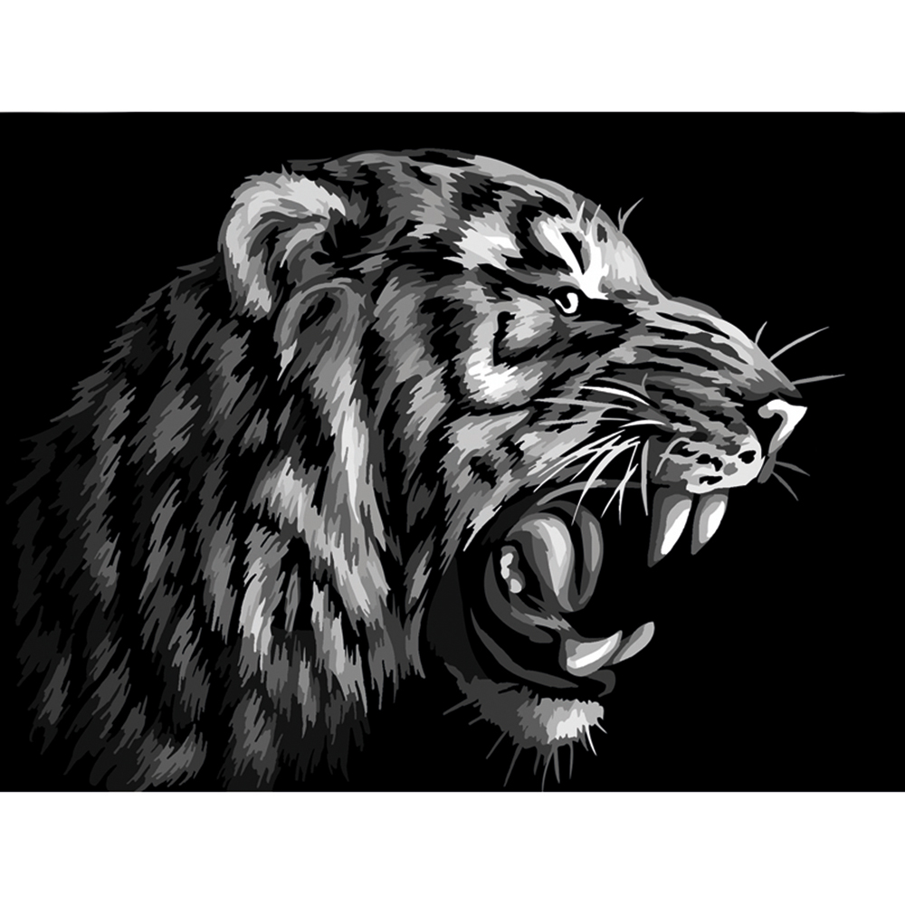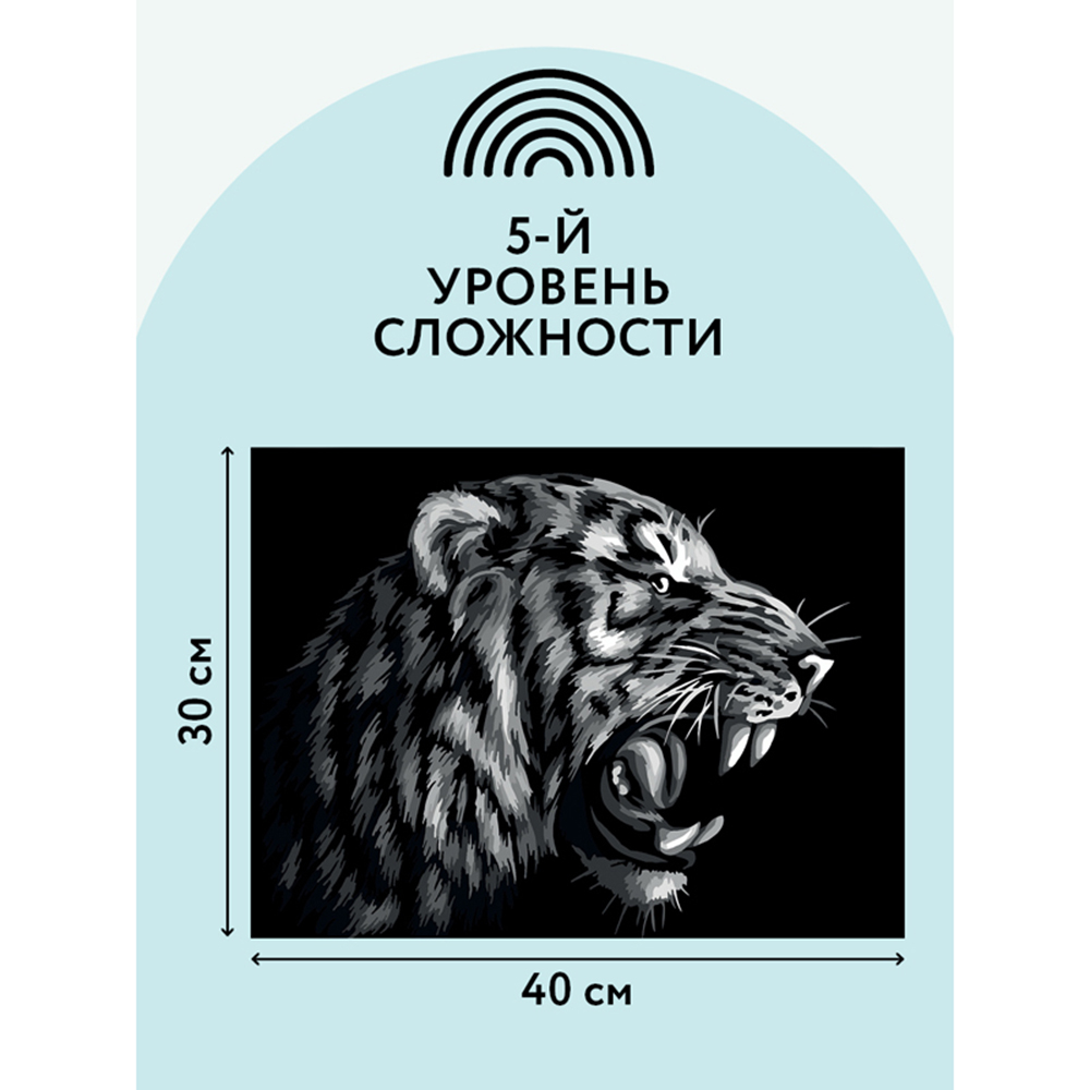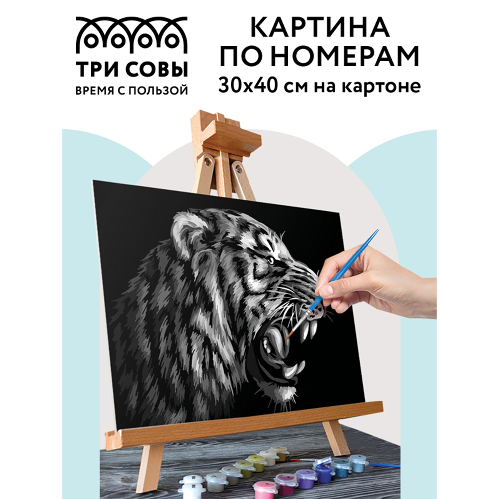 Картина по номерам на картоне - 30х40см "Монохромный тигр" 18 акриловых красок и 2 кисти (ТРИ СОВЫ)