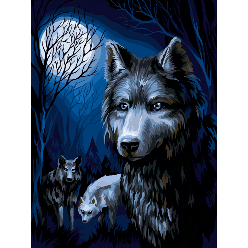 Краски обладают высокой плотностью, что позволяет перекрыть нанесенный контур в 1 слой. Технология точной разбивки сюжета картины на разные цветовые оттенки гарантируют правильность выполнения рисунка. Законченная работа с изображением красивого волка займет почетное место в интерьере или станет отличным подарком.