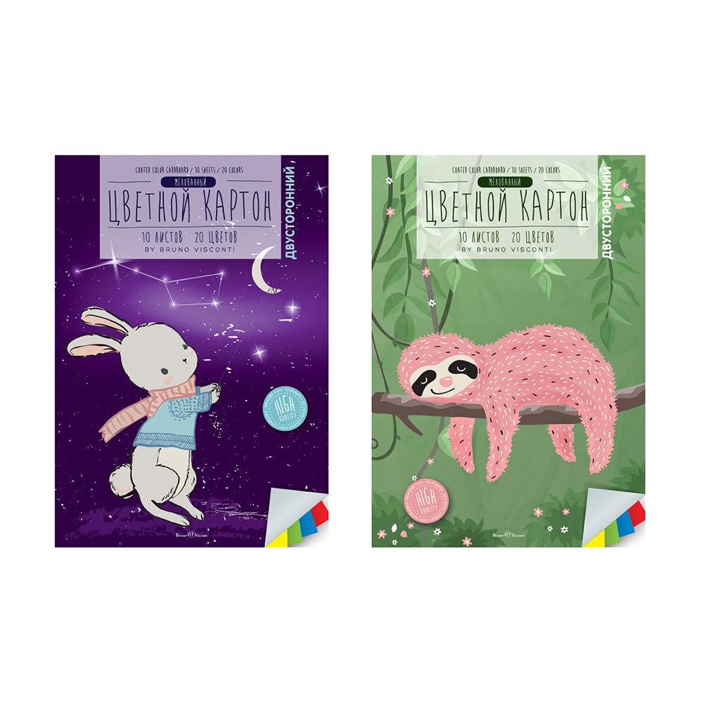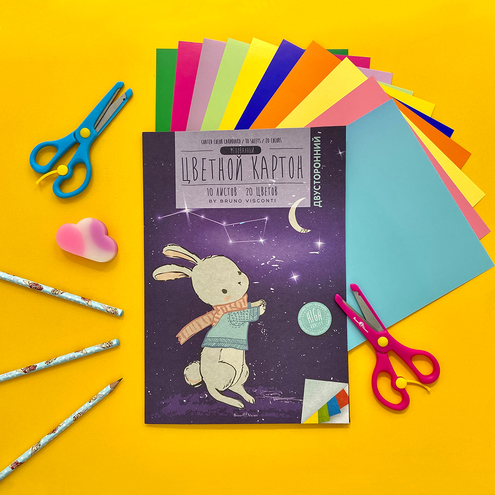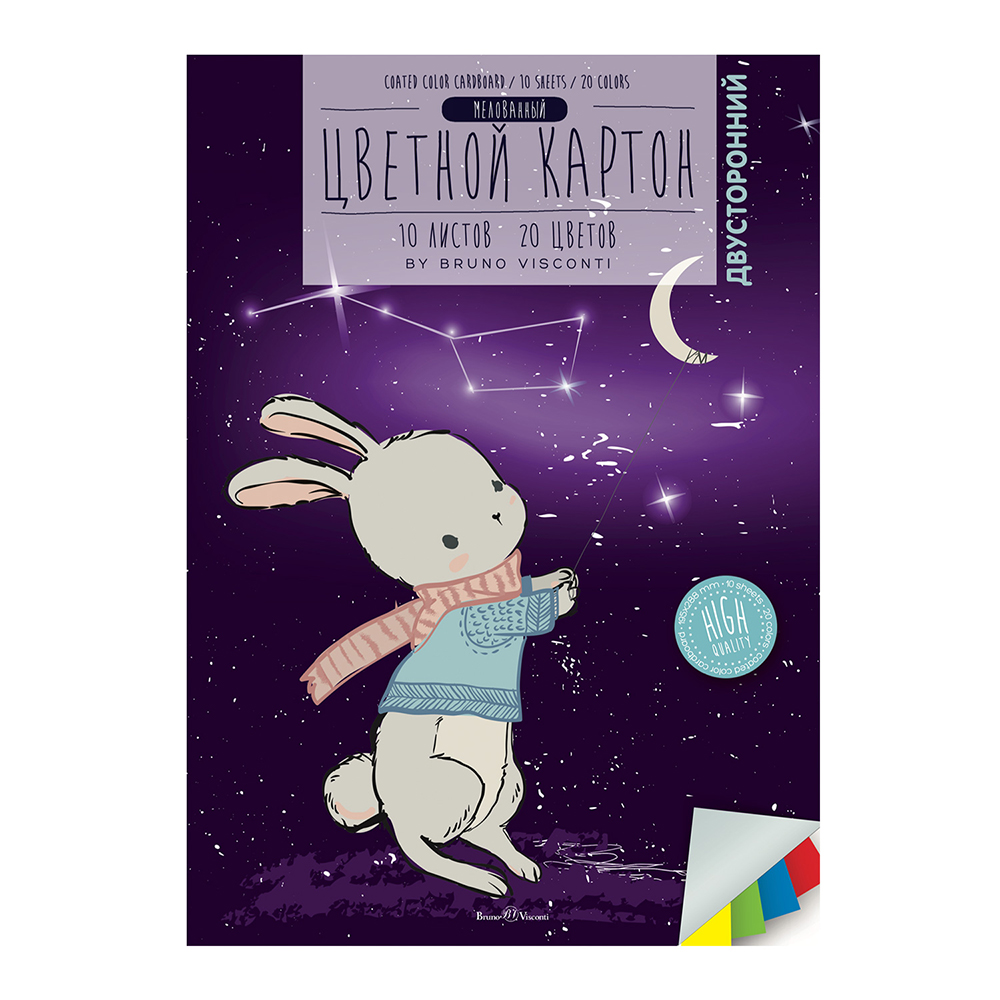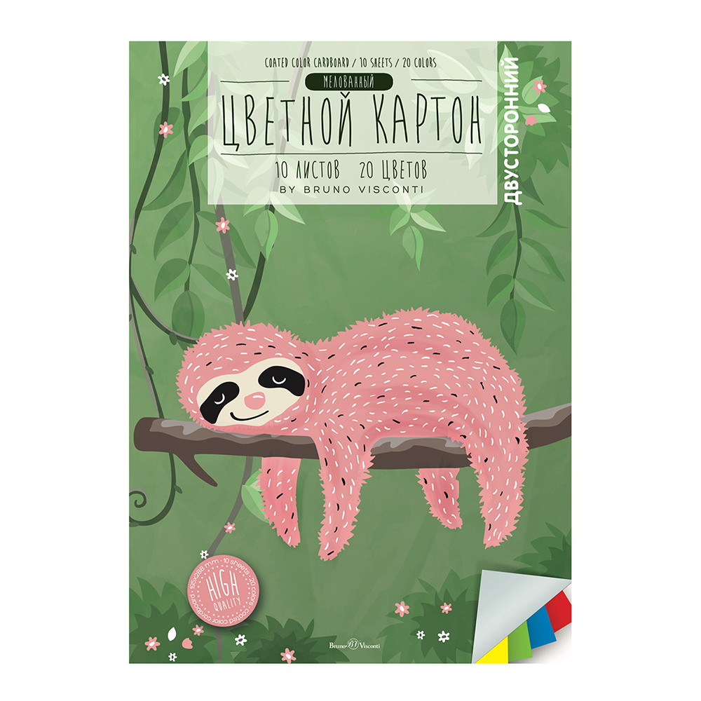 Картон цветной в наборе - 195х288 10л. 20цв. "Двусторонняя" (Bruno Visconti)