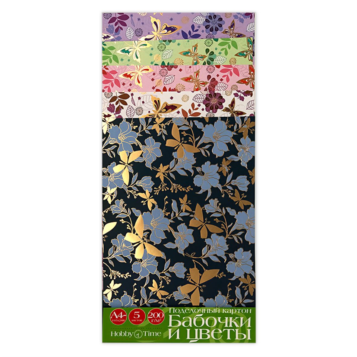Картон цветной в наборе - 195х288 5л. 5цв. "Бабочки и цветы" (Альт)
