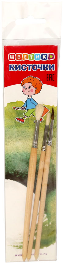 Кисть для рисования - необходимое средство для занятий живописью. Кисти в наборе "ЦВЕТИК" - это возможность достичь желаемого результата, используя кисти разной формы, сделанные из различных типов волос. Аксессуары сделаны из натурального волоса - волос пони и козы. В наборе три кисти: плоская и две круглые.