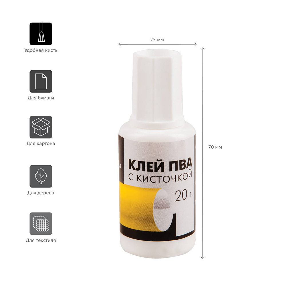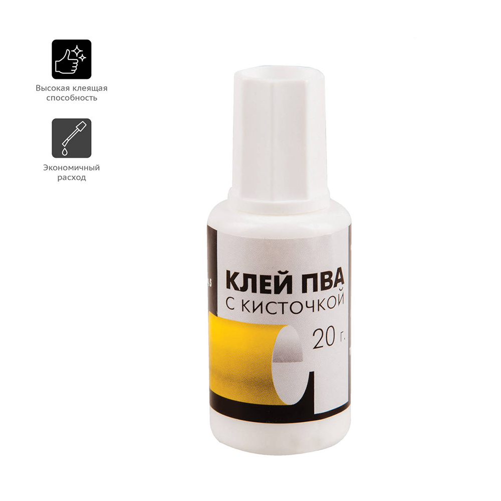 Клей ПВА «Гамма», 20 г с кисточкой — удобный и практичный помощник для учебы, творчества и офисных задач.