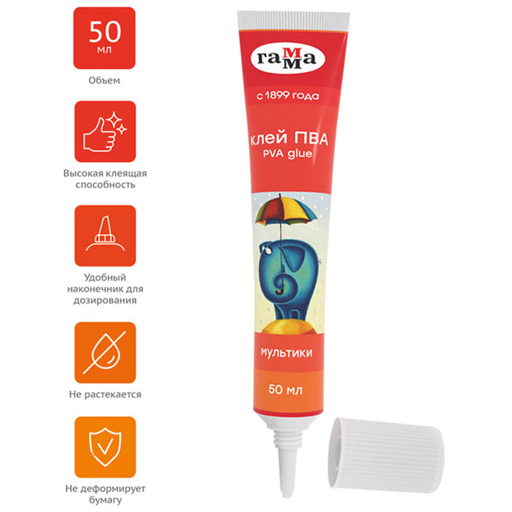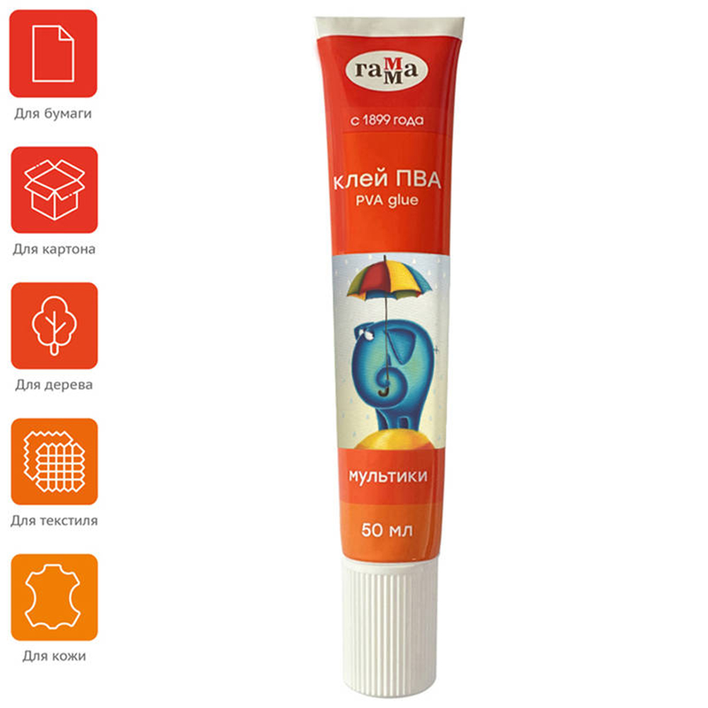 Клей ПВА - 50гр."Мультики". в тубе (Гамма)