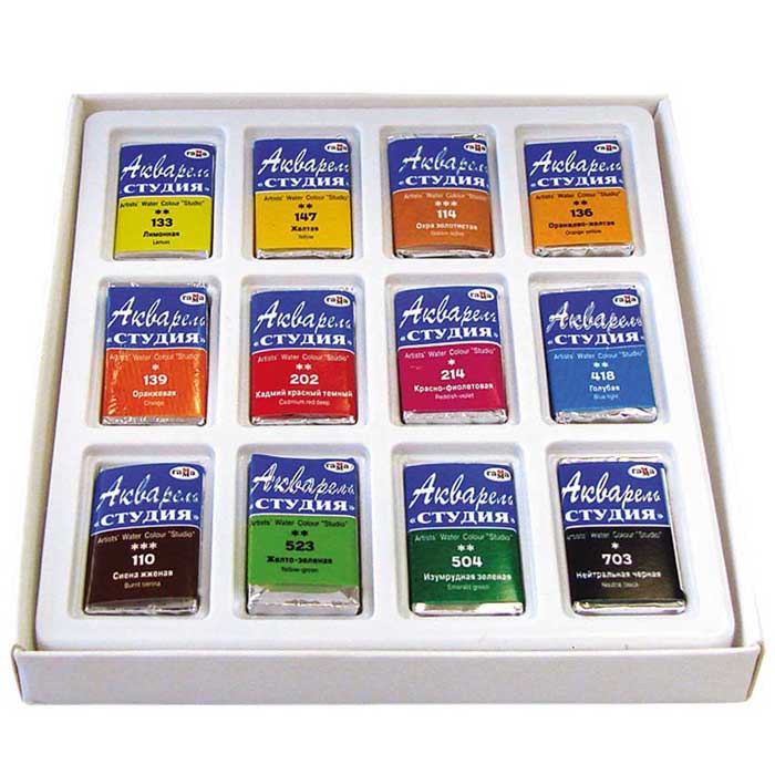 Краски акварельные художественные - 12цв. "Студия" кювет картон.уп. (Гамма)