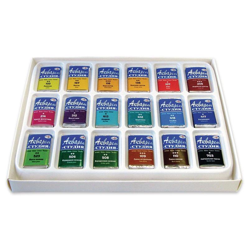 Краски акварельные художественные - 18цв. 2.6см.3 "Студия" кювет картон.уп. (Гамма)