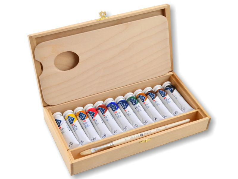 Подарочный набор масляных красок "Мастер класс" торговой марки "Невская палитра"  представлена в деревянной шкатулке, 12 цветов по 18 мл., и еще кисть.
