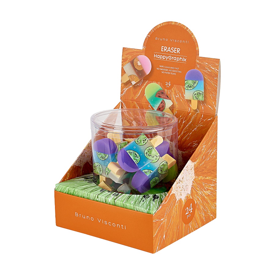 Ластик ассорти «HappyGraphix. Фруктовое мороженое» от бренда Bruno Visconti — яркий и практичный аксессуар для аккуратного удаления карандашных линий.
