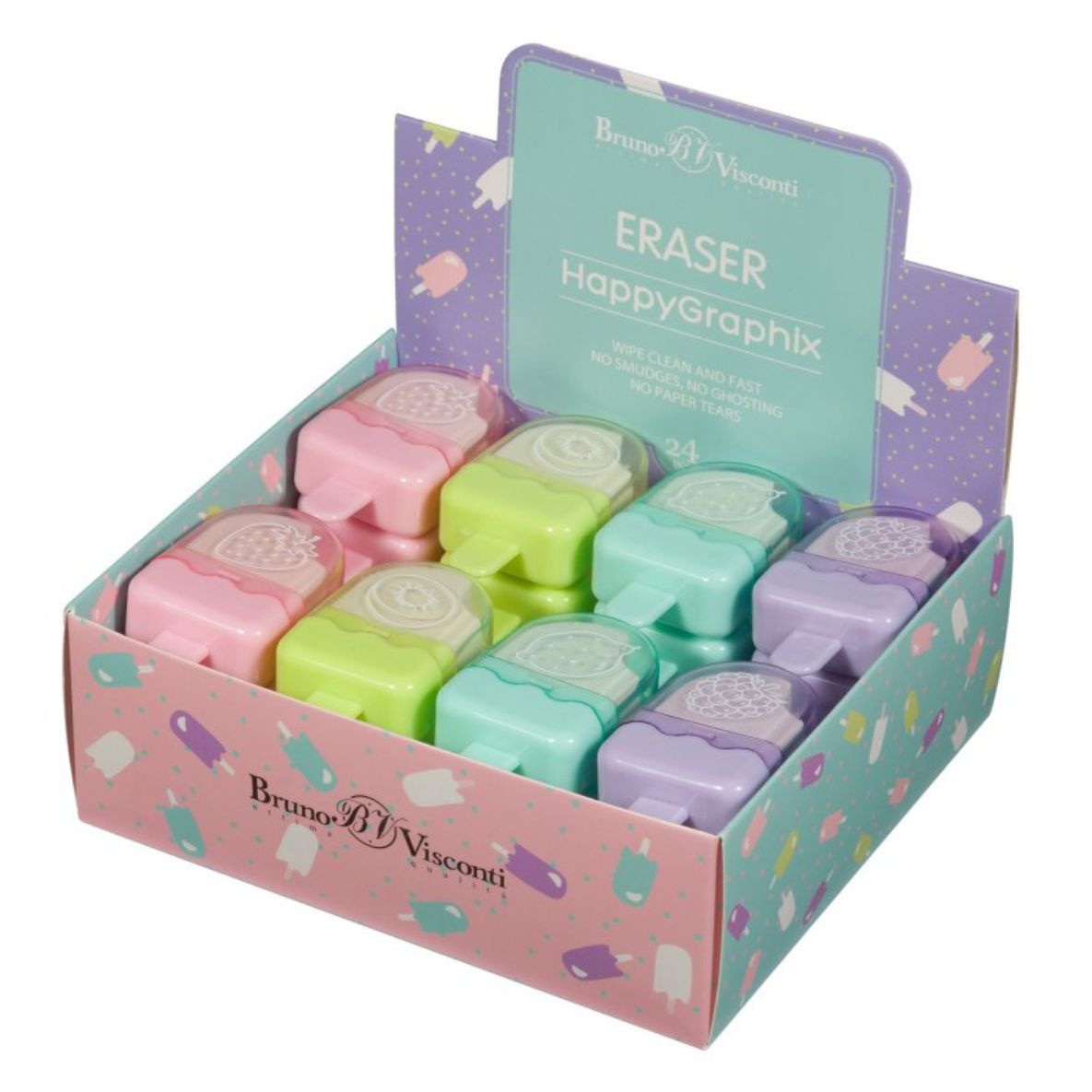 Ластик ассорти «HappyGraphix. Мороженки» в пластиковой упаковке от бренда Bruno Visconti — яркий и забавный аксессуар для аккуратного стирания карандашных линий.