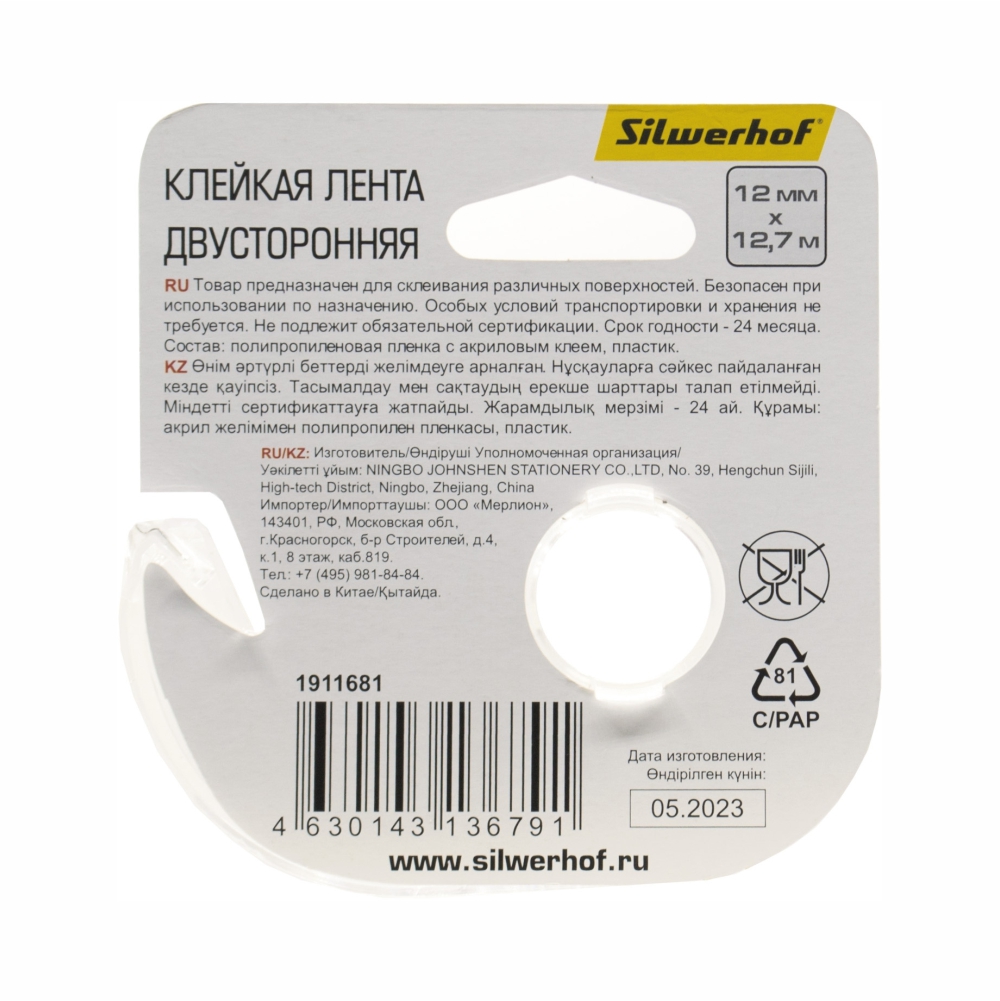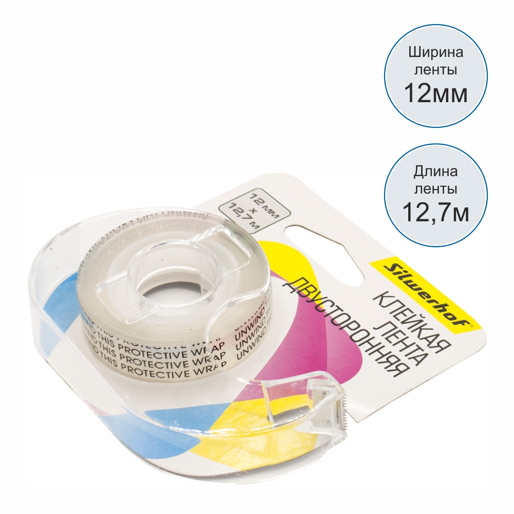 Лента клейкая - 12ммх12.7м двусторонняя (Silwerhof)