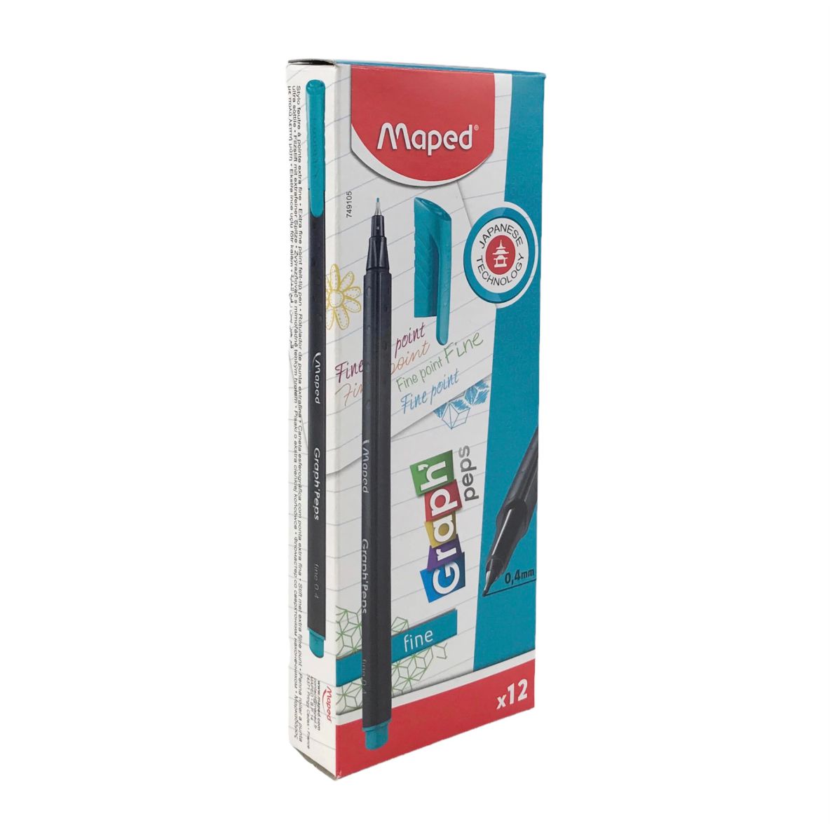 Линер 0.4 мм Graph Peps бирюзовый от Maped — это яркий и удобный инструмент для письма, рисования и графических работ.