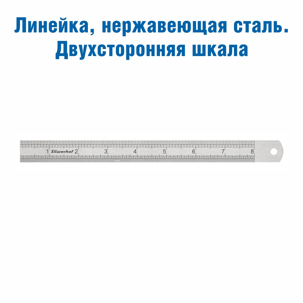 Металлическая линейка Silwerhof 20 см с двухсторонней шкалой, нержавеющая сталь.