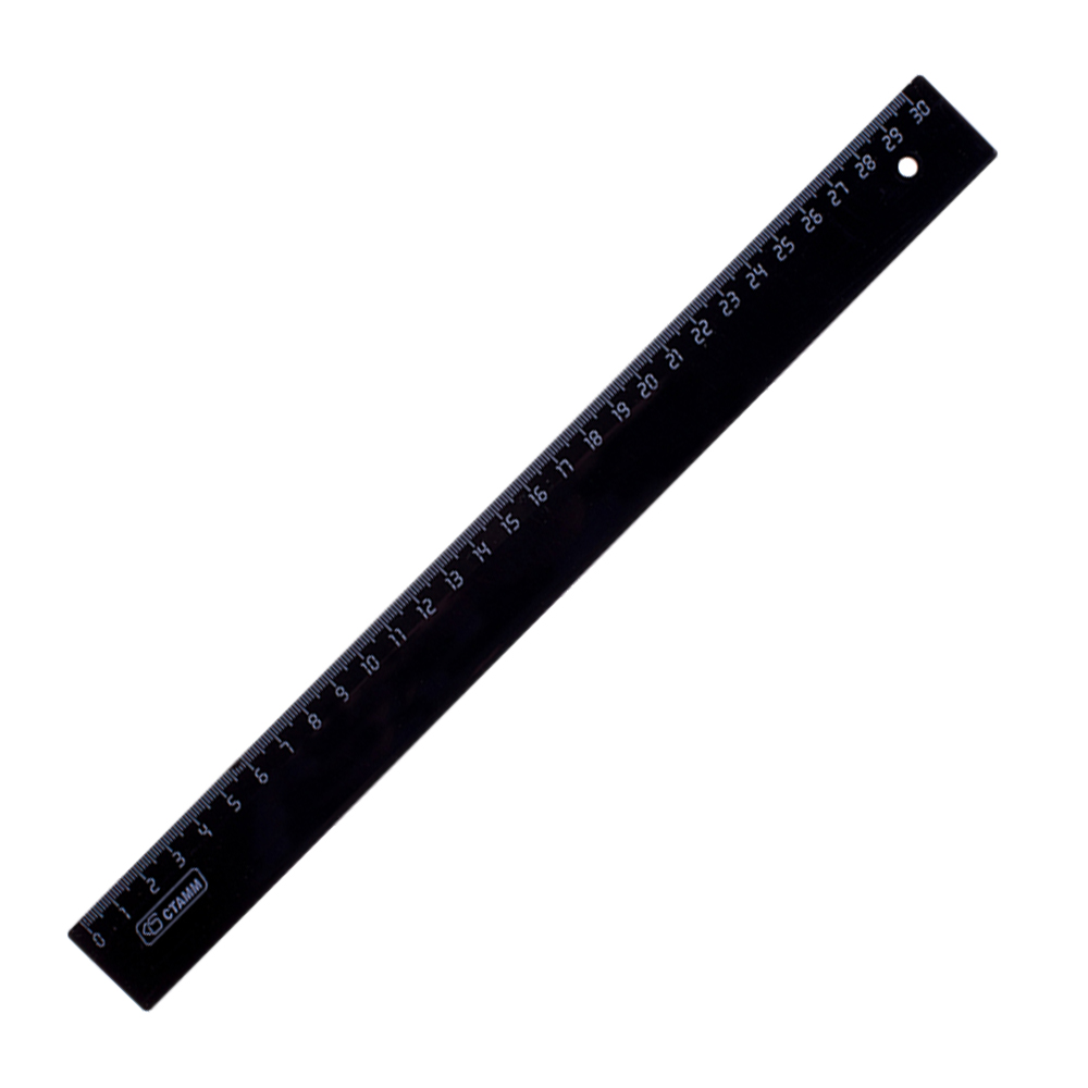 Пластиковая линейка длиной 30 см выполнена в классическом чёрном цвете. Чёткая и хорошо читаемая шкала обеспечивает точность измерений и аккуратность при черчении и разметке. Лёгкая и прочная, устойчива к износу и деформации. Подходит для использования в школе, офисе и дома.