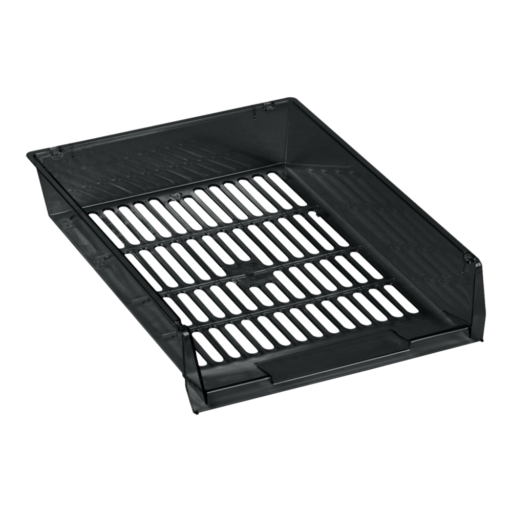 Горизонтальный лоток серии «Респект» от Стамм выполнен в чёрном цвете с практичным сетчатым дизайном, который придаёт изделию современный вид и обеспечивает хорошую вентиляцию документов. Односекционная конструкция позволяет удобно сортировать и хранить бумаги формата A4, папки и прочие материалы, облегчая доступ к ним. Прочный металлический корпус с сеткой отличается высокой износостойкостью и долговечностью.