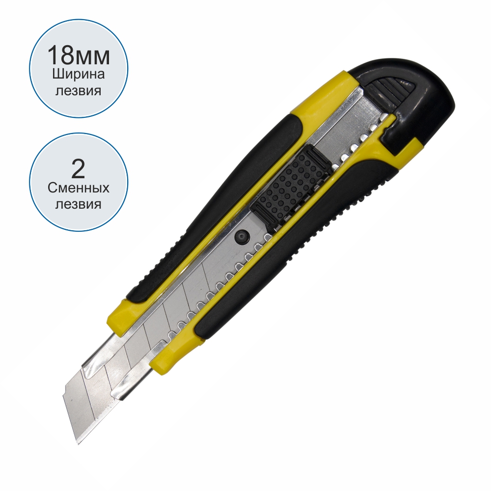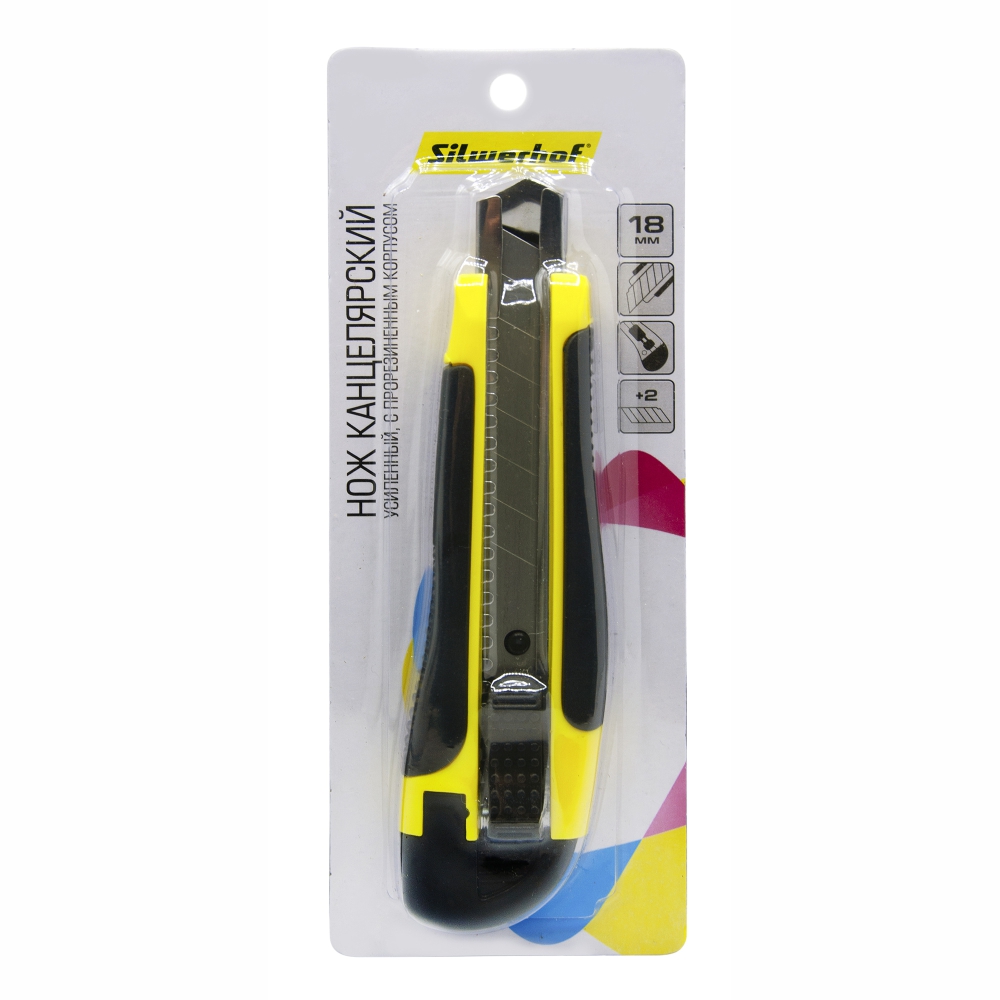 Макетный нож - 18мм желтый/черный фиксатор усиленный 2 сменных лезвия (Silwerhof)