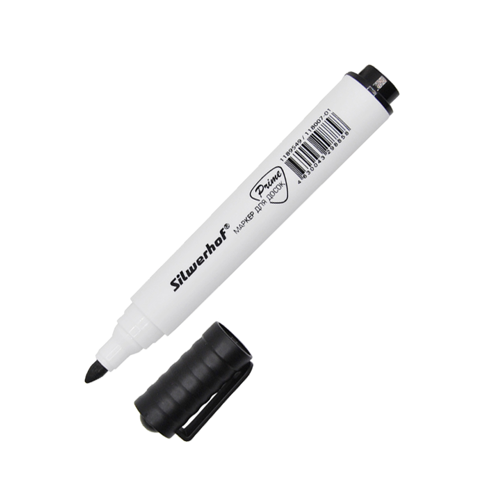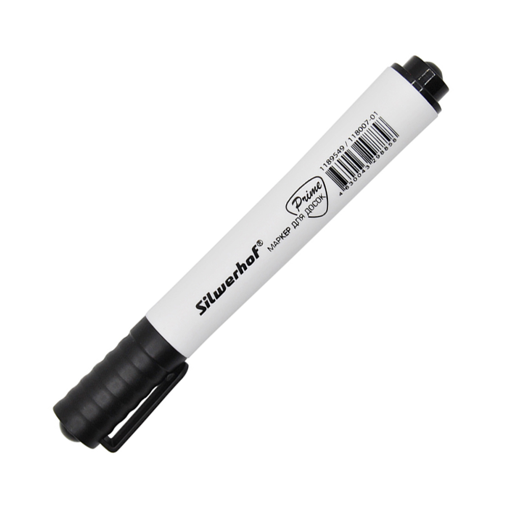 Маркер для доски «Prime» от бренда Silwerhof имеет пулевидный пишущий наконечник. Толщина линии письма 1-3 мм. Маркер представлен в классическом утолщенном корпусе с оригинальным ребристым колпачком с клипом. Цвет колпачка соответствует цвету чернил. Цвет чернил черный.