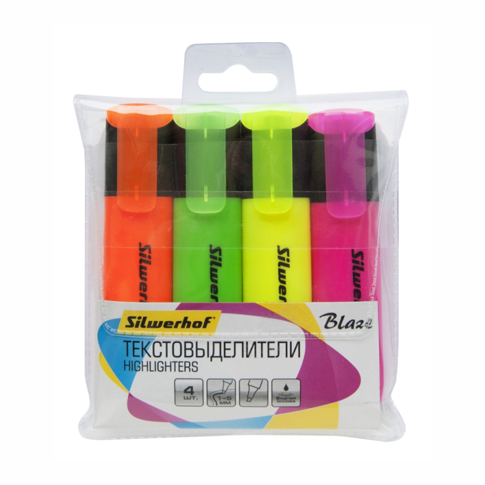 Маркеры текстовые в наборе - 4цв. 1-5мм. "Blaze" (Silwerhof)
