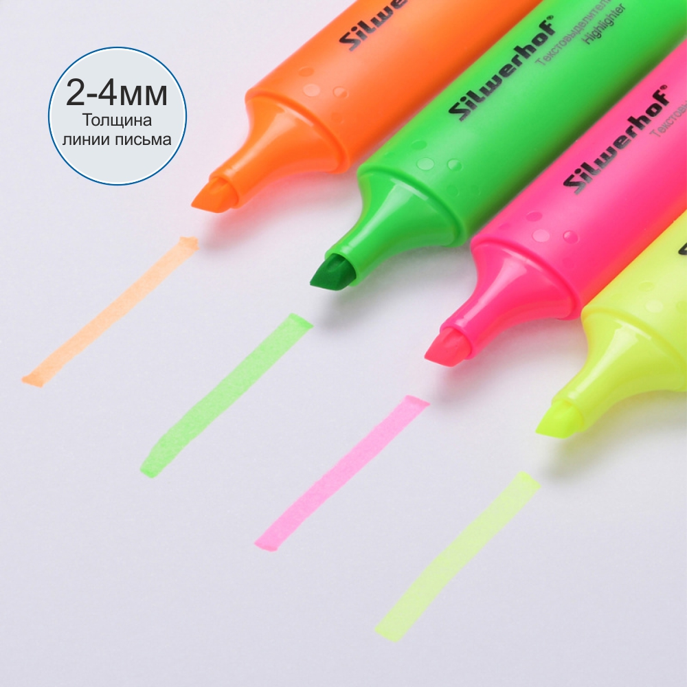 Яркие и удобные маркеры Silwerhof "Blaze" помогут подчеркнуть важное и сделать ваши заметки наглядными! Набор из 4 цветов позволяет выделять информацию, создавать схемы и визуализировать идеи.