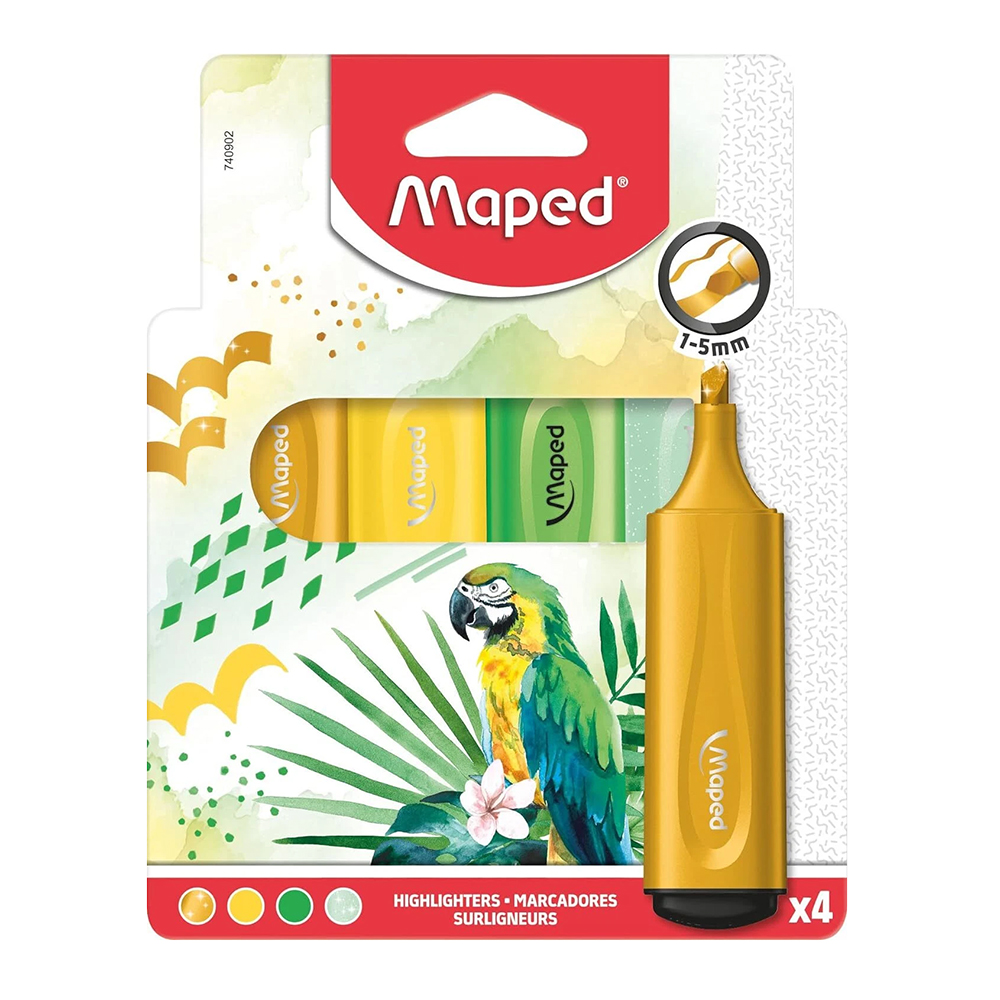 Яркий набор текстовых маркеров Maped "Ocean.Tropical.Sunset" включает 4 насыщенных цвета, вдохновлённых морской и тропической тематикой. Маркеры легко наносятся на бумагу, создавая ровные и яркие линии. Эргономичная форма корпуса обеспечивает комфортное письмо даже при длительной работе.