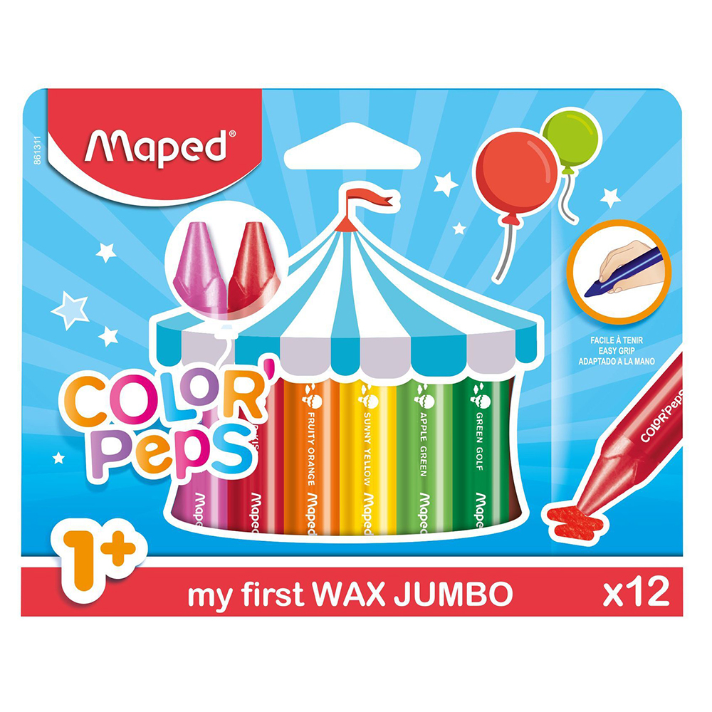 Набор восковых мелков Maped Color'peps Jumbo из 12 ярких цветов — идеальный выбор для маленьких художников. Утолщённые мелки легко держать в детской руке, они мягко ложатся на бумагу и позволяют создавать насыщенные рисунки без усилий.