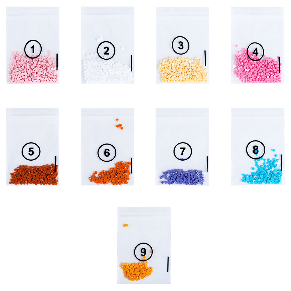 Выполнение работы не требует специальных навыков. Круглые кристаллы выкладываются поверх изображения со схемой на уже нанесенный клеевой слой.