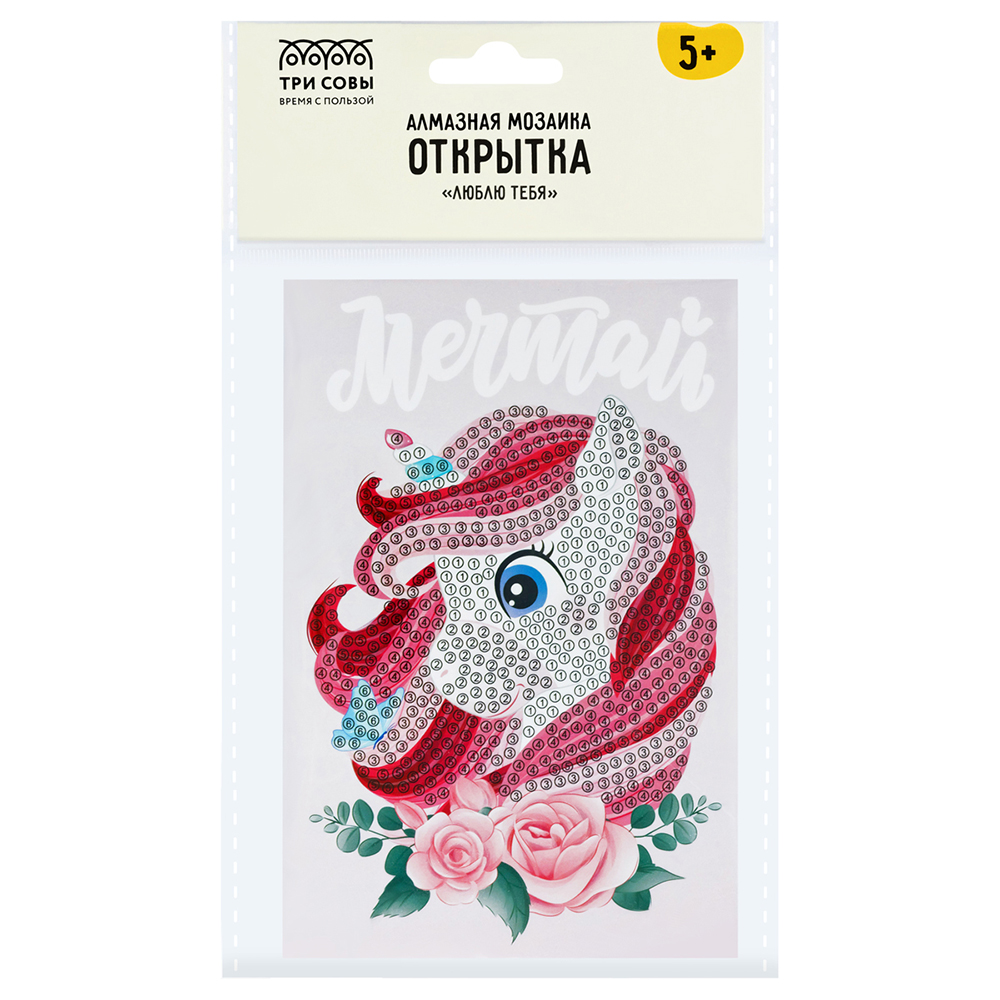 Мозаика алмазная открытка "Люблю тебя. Мечтай" 5+ (ТРИ СОВЫ)