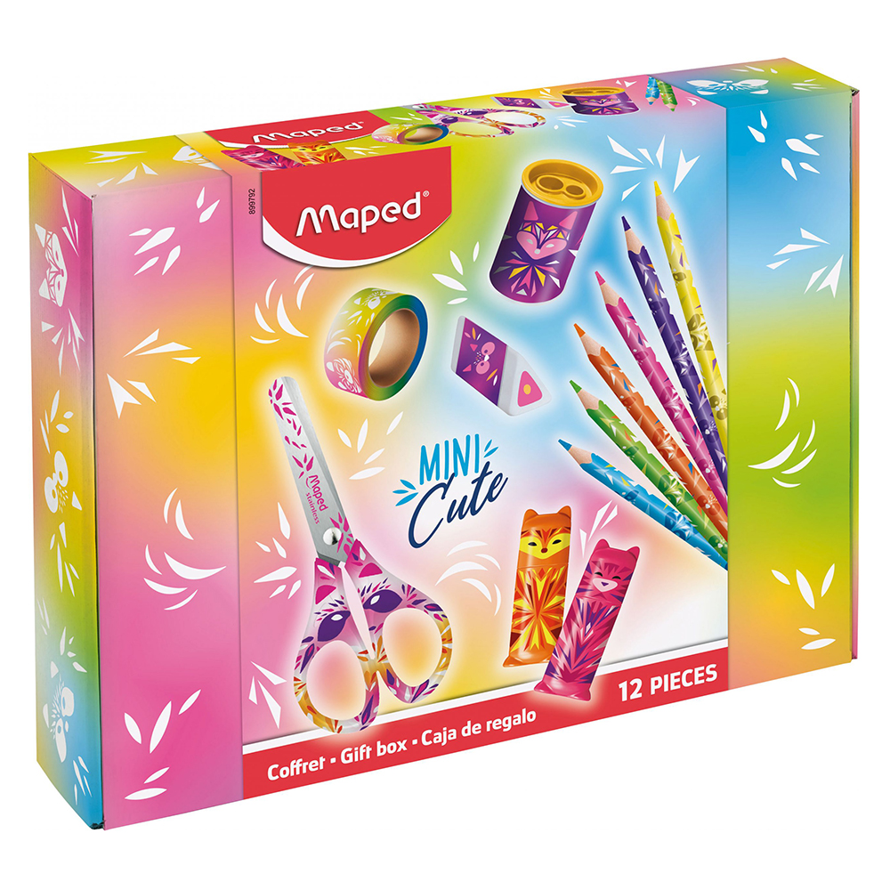 Набор д/раскрашивания - 12 предметов "Mini Cute" (цв.карандаши-6шт. ластик-1шт. точилка-1шт. ножницы-1шт. маркер-2шт. лента клейкая-1шт. (Maped)