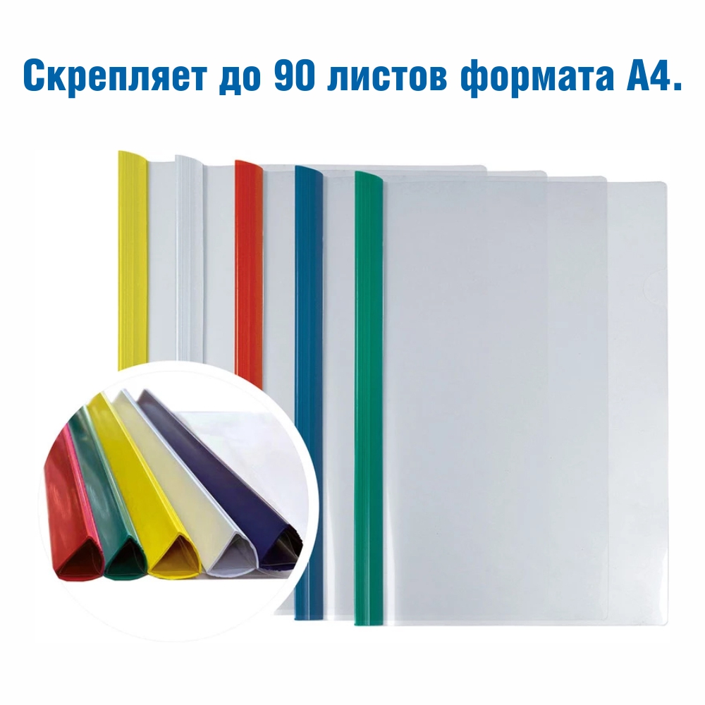 Папка-бегунок А4, прозрачная с цветным корешком (ФинСиб) — практичное решение для аккуратного хранения и подшивки документов без перфорации. Прозрачная обложка позволяет быстро видеть содержимое, а яркий цветной корешок надёжно фиксирует листы.