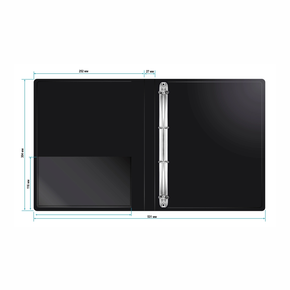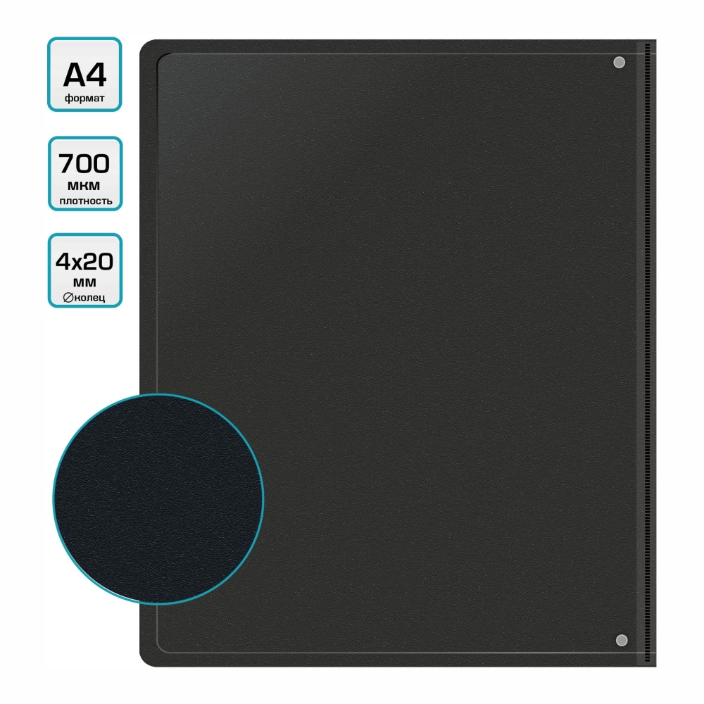 • Механизм: 4 металлических кольца — надёжная фиксация документов