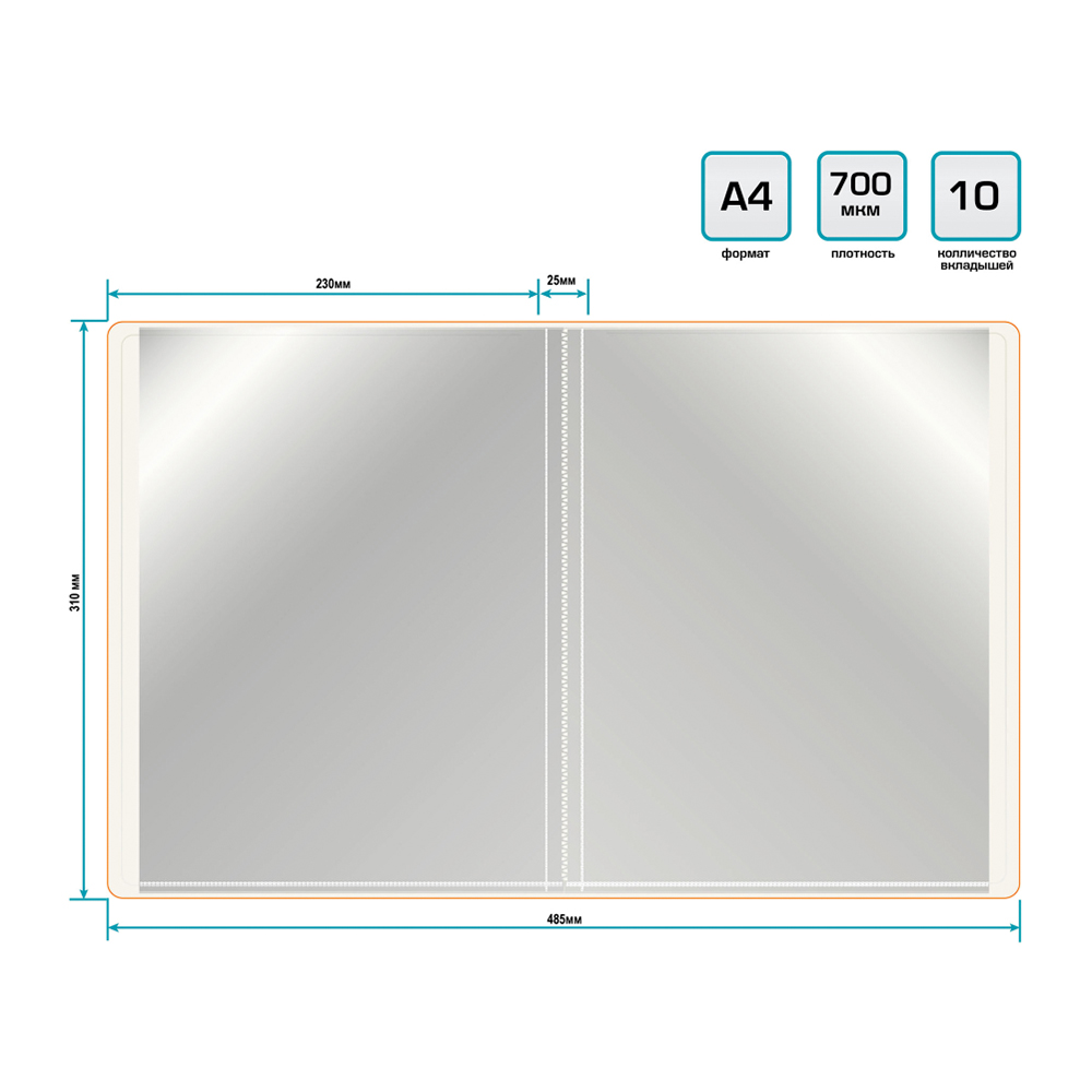 • 10 файлов формата А4 — удобно хранить документы и отчёты.