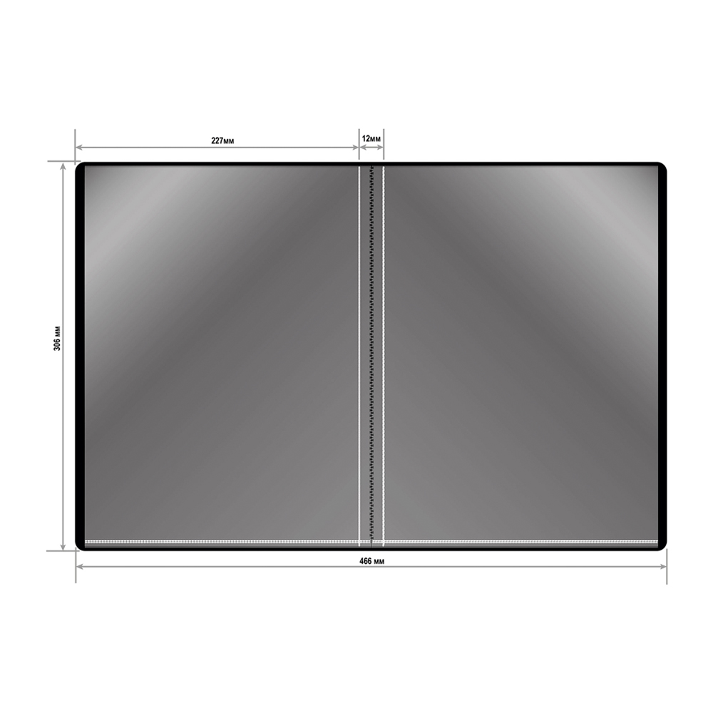 Внутри расположено 10 прозрачных файлов формата А4, в которые удобно помещать распечатки, отчёты и презентации.