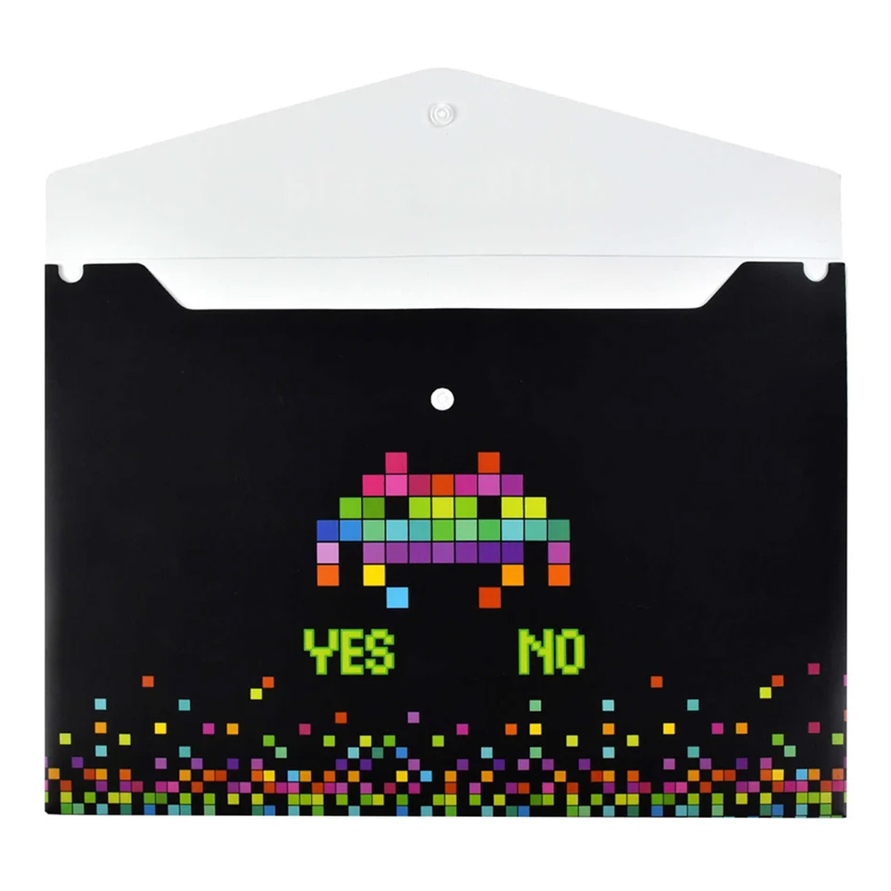 Изготовлена из прочного пластика, который защищает бумаги от влаги, загрязнений и повреждений. Оснащена одним отделением, что позволяет аккуратно хранить документы, а надёжная кнопка предотвращает их выпадение. Декор с динамичным дизайном «Цифровая атака» делает папку современной и яркой, идеально подходящей для школы, дома или офиса.